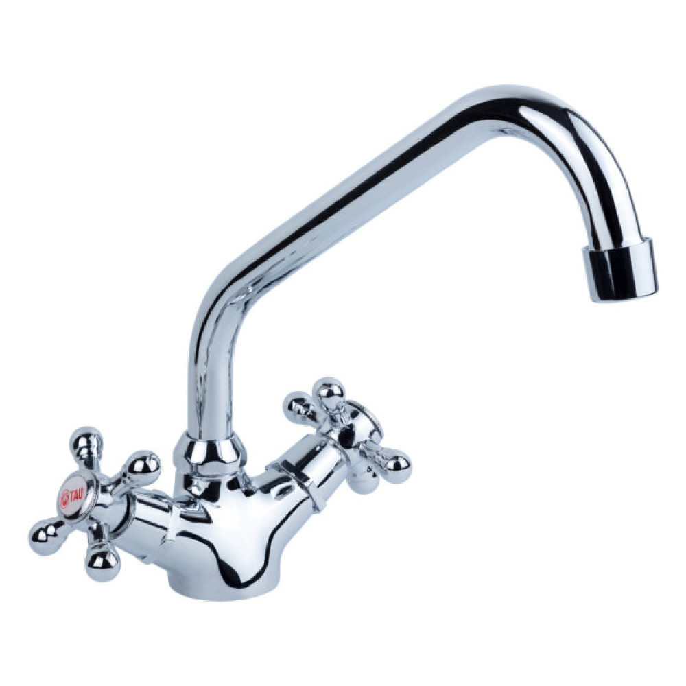 Представлена тут модель врізного, двовентильного кухонного змішувача VD-4B161C від Tau хромованого кольору, має поворотний, гнучкий, гофрований вилив з виносом 20 см, і призначена для встановлення на один отвір за допомогою гнучкого шлангового з'єднання під діаметр 1/2".