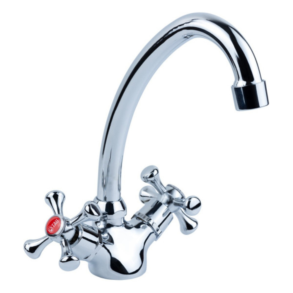 Представлена тут модель врізного, двовентильного кухонного змішувача VN-5B160C від Tau хромованого кольору, має поворотний вилив з виносом 20 см, і призначена для встановлення на один отвір за допомогою гнучкого шлангового з'єднання під діаметр 1/2".