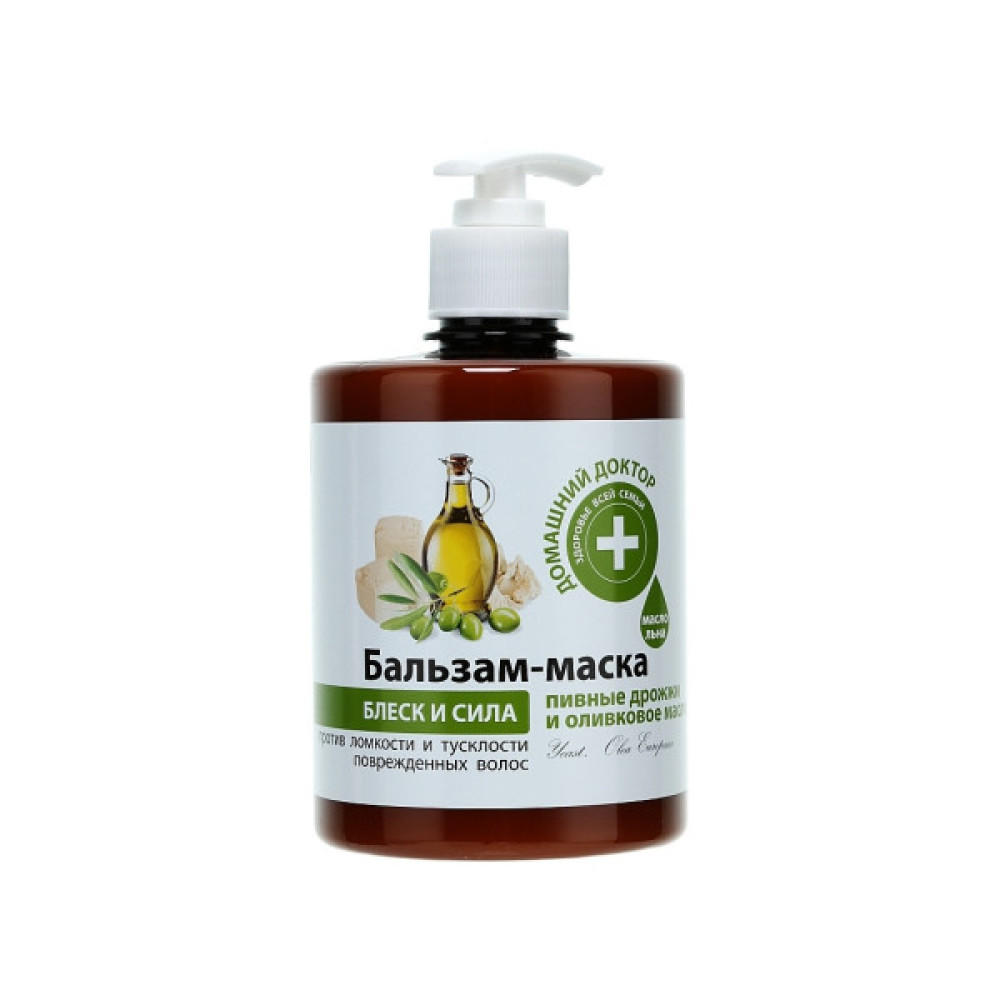 Бальзам-маска «Пивні дріжджі і оливкова олія» від компанії «Домашній лікар» подарує вашому волоссю гарне зволоження, гладкість і небувале сяйво. Головним компонентом цього бальзаму є пивні дріжджі, відомі своєю властивістю робити шевелюру неймовірно гладенькою, шовковистою й м'якою, зміцнюючи при цьому структуру волосся. Комплекс з олій оливкового дерева й льону має пожвавлювальну й регенерувальну дію та наповнює вітамінами шкіру голови й волосяні луковиці. Волосся стане міцним і еластичним, блискучим і шовковистим.