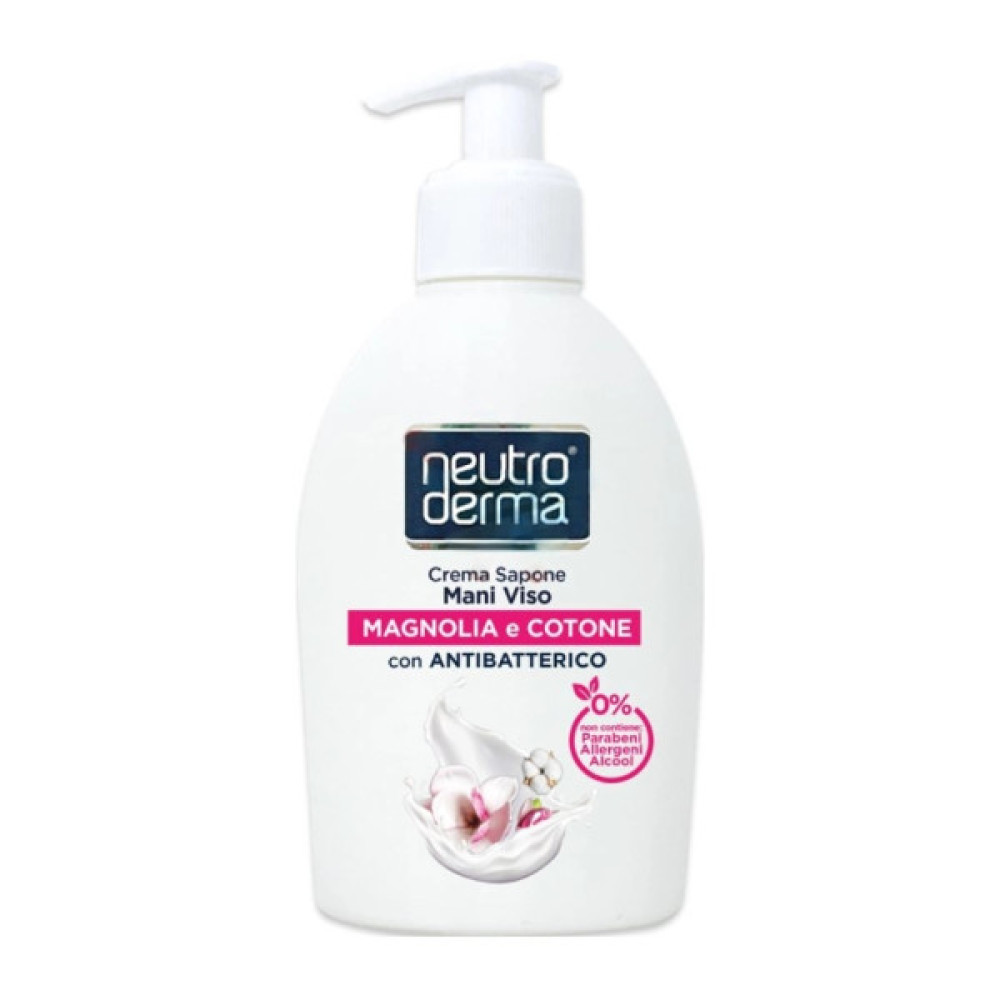 Крем-мило для рук та обличчя антибактеріальне з магнолією та бавовною має гіпоалергенну та антибактеріальна формулу, не містить парабени та спирт. Екстракт магнолії та бавовни має сильні протизапальну, антибактеріальну та заспокійливу дії, зменшує відчуття зуду та почервоніння, вирівнює тон шкіри. Хлоргексидин та рослинний гліцерин завдяки своїм властивостям очищають та дезінфікують шкіру, роблять її м'якою та ніжною.
