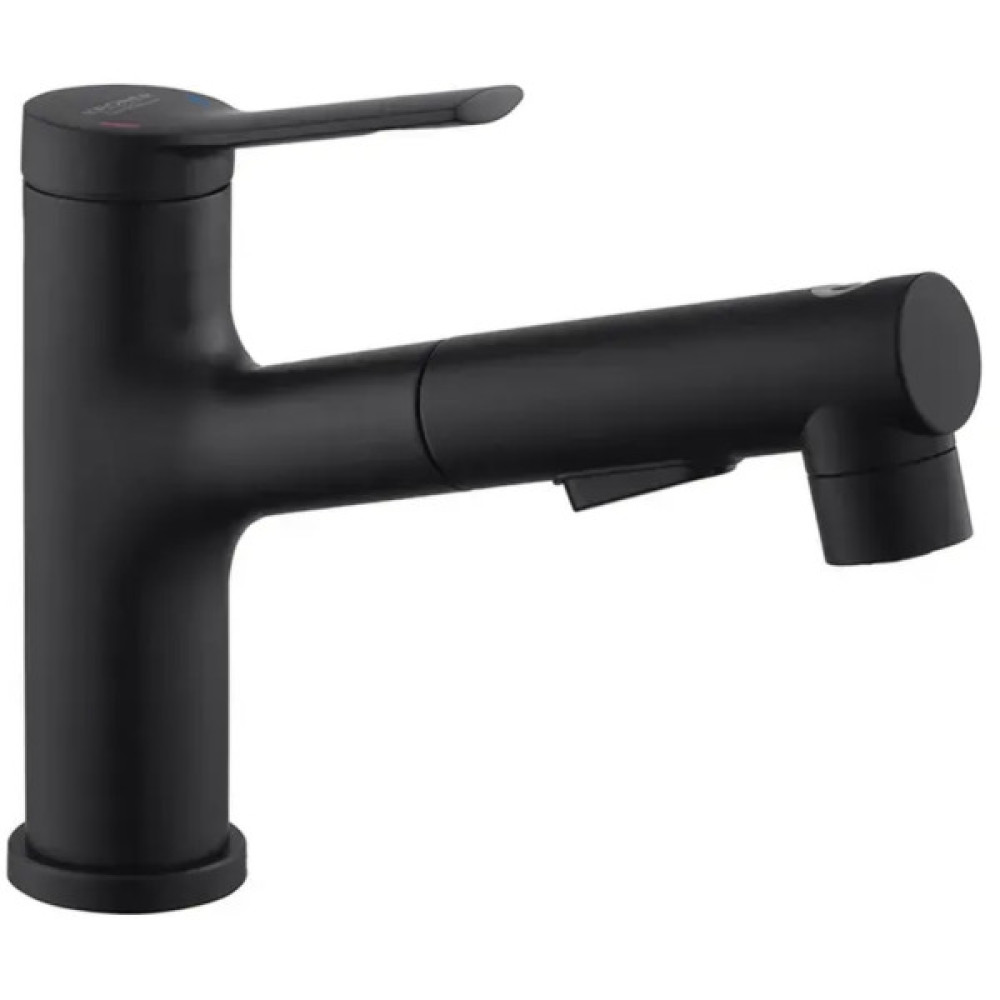 З його чорним матовим кольором цей змішувач додає елегантності вашій ванній кімнаті. Висувний поворотний вилив дозволяє легко маніпулювати напрямом води, роблячи його зручним у використанні.