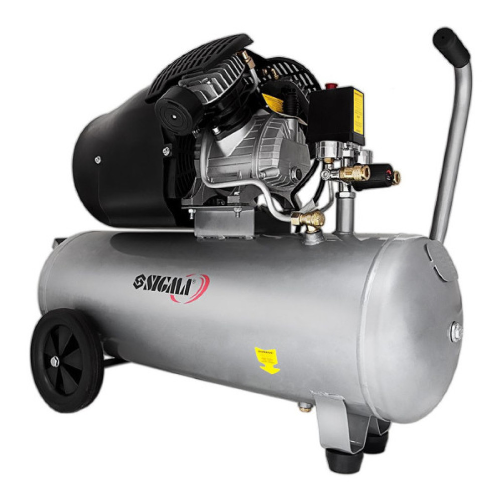 Двоциліндровий масляний компресор Sigma 7043721 призначений для нагнітання стисненого повітря з подальшою його подачею під тиском в різні типи пневмоінструменту і пневмообладнання. Двигун компресора закритий спеціальним кожухом, який запобігає його пошкодження і забруднення. Опорна ніжка забезпечує стійке положення на поверхні, а гумова подушечка знижує рівень вібрації. Модель компресора Sigma 7043721 має потужність 2.5 кВт і великою продуктивністю 455 л / хв з високим тиском (до 10 бар). Ресивер місткістю 50 л дозволяє накопичувати більший обсяг стисненого повітря, що значно зменшує частоту включення двигуна, знижуючи навантаження на компресор і, відповідно, збільшує термін його служби.