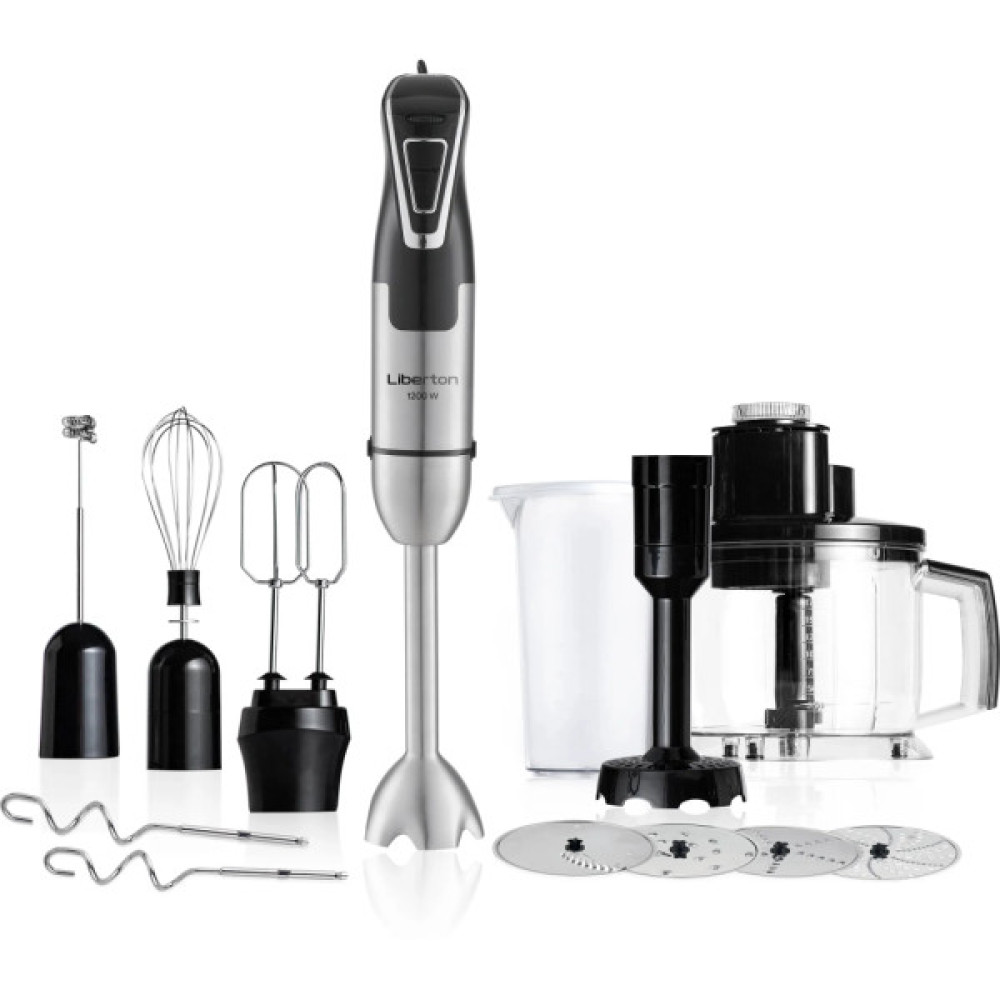 У комплектації блендера Liberton LHB-0312 є все необхідне для реалізації кулінарних задумів. Насадка-блендер і насадка-вінчик ідеально підходять для змішування та збивання, забезпечуючи ніжну текстуру кремів та пюре. Базовий набір аксесуарів включає міксерну насадку і гак для тіста, що дозволять перемішувати та замішувати різні типи тіста з максимальною ефективністю.