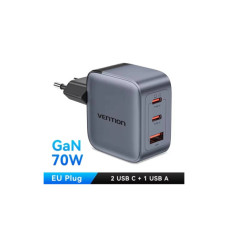 Зарядний пристрій Vention 1xUSB-C PD70W + 1xUSB QC3.0 22.5W GaN + cable USB-C to USB-C 1.0m 5A gray (TZ-FCGH0-EU)