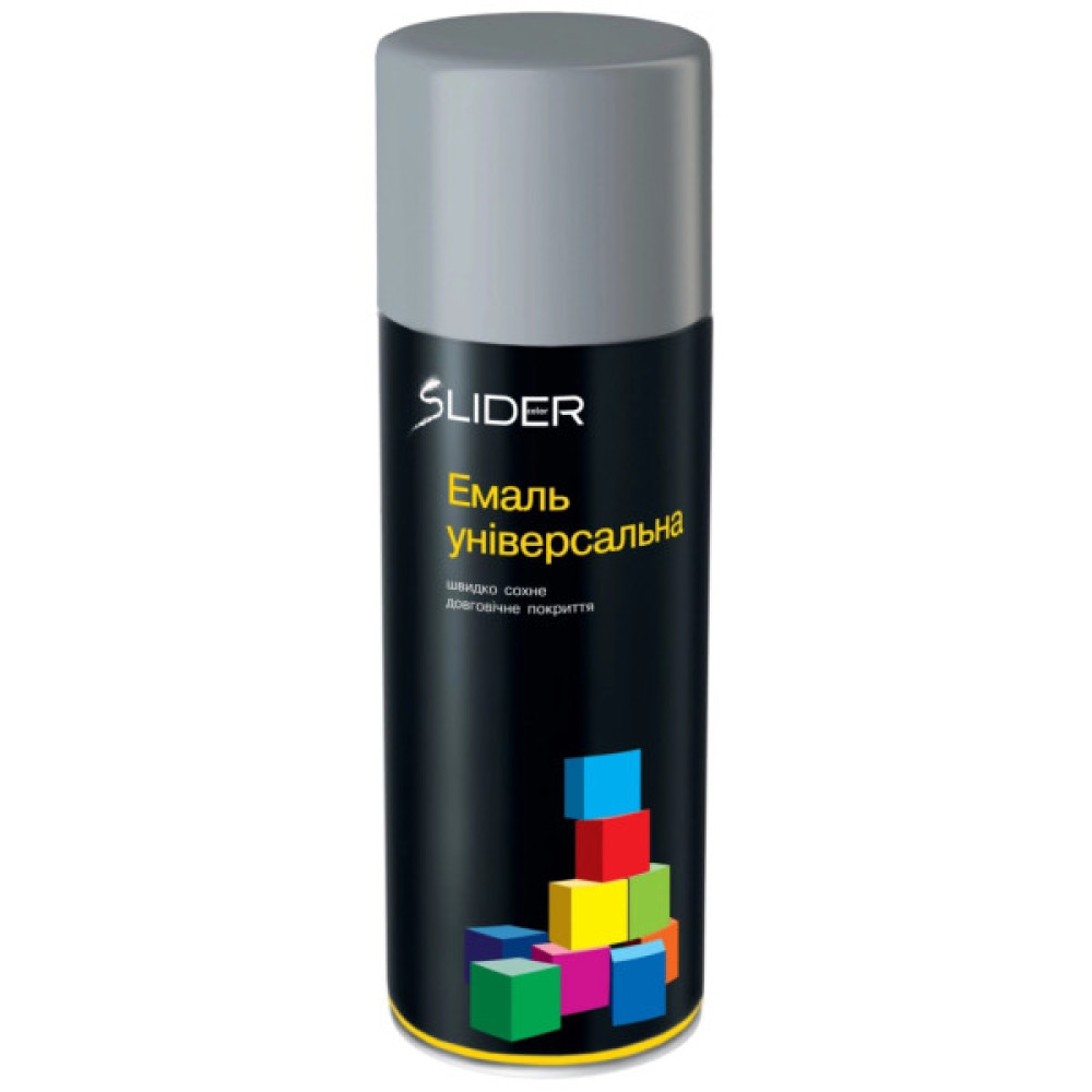 Емаль SLIDER універсальна - універсальна швидковисихаюча аерозольна емаль SLIDER - підходить для фарбування пластикових, дерев'яних та металевих основ. Має стійкість до вицвітання і втрати кольору. Велика палітра кольорів сприяє більш легкому вибору.