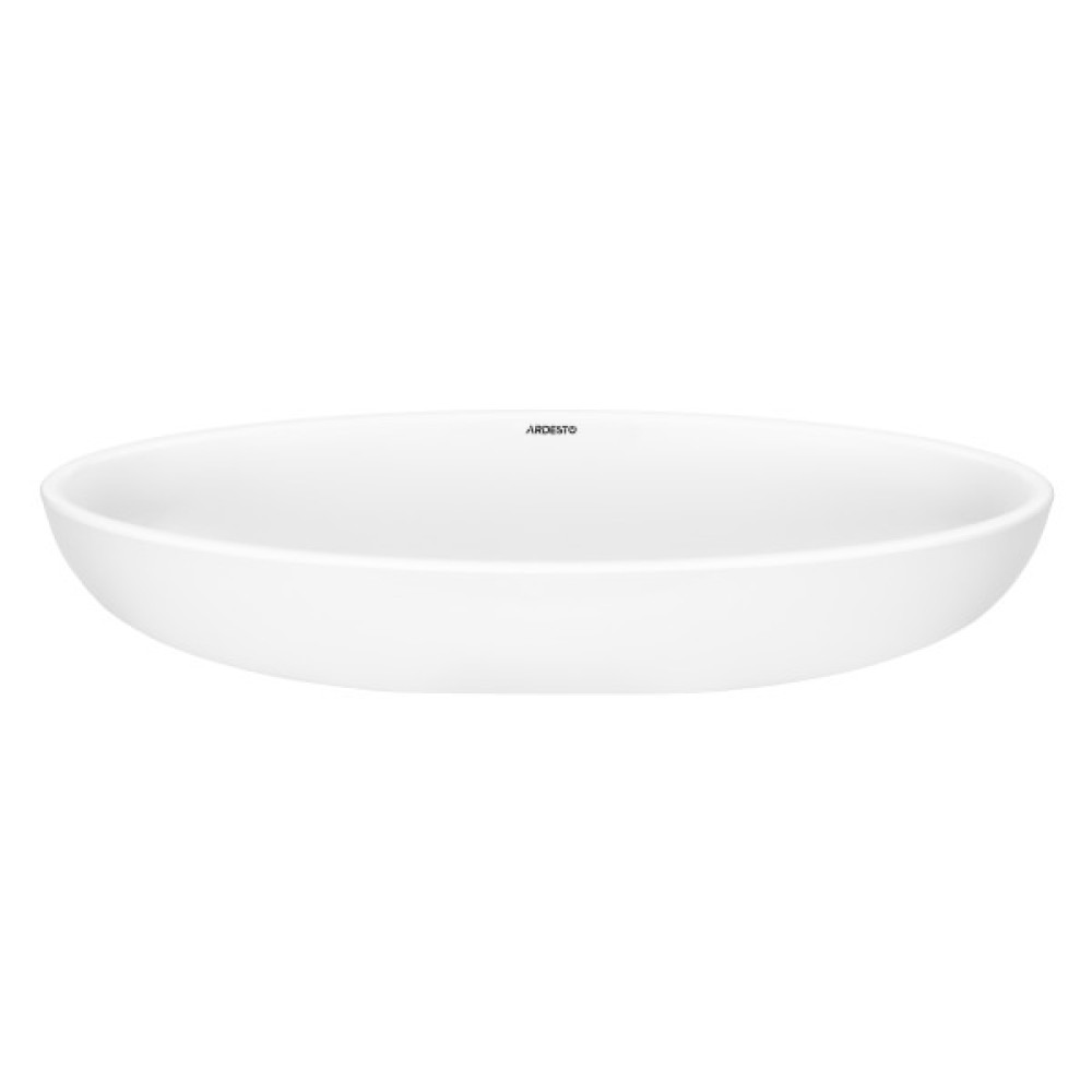 Раковина, умивальник ARDESTO Madeleine, штучний камінь, овальна, без отвору для змішувача та переливу, 590х295х130мм, накладний, білий