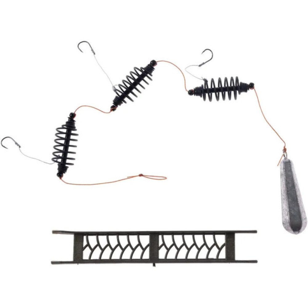 Оснастка X-Fish Вбивця карася - це тандемна донна фідерна оснастка. Призначена для лову карася на озерах і ставках. За допомогою цього оснащення, можна доставити підгодовування в зону лову. Закріплюється підгодовування в годівницях оснащення. Оснащена гачками Leader № 7, годівницями і грузилом.