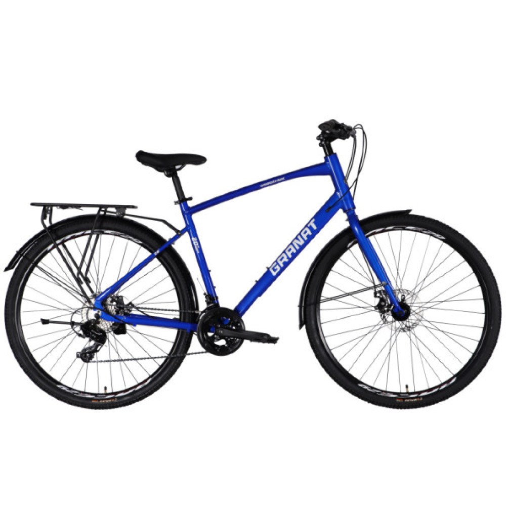 Dorozhnik GRANAT M — це сучасний міський велосипед створений для впевненого та комфортного пересування в умовах міста й передмістя. Модель оснащена легкою алюмінієвою рамою розміру 20", великими колесами 28", та дисковими гальмами (DD), що гарантують ефективне гальмування незалежно від погоди.