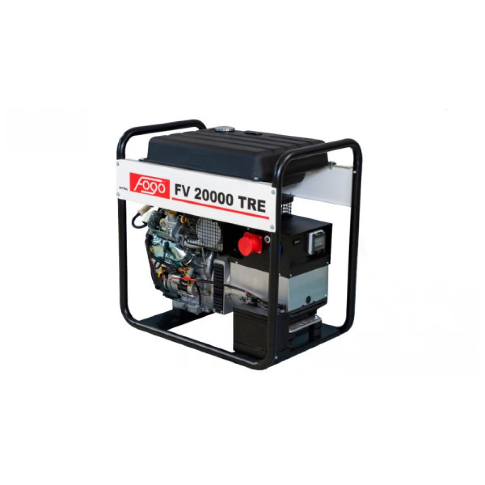 FOGO FV 20000 TRE - трифазний бензиновий генератор із двигуном Vanguard 5434. Запуск відбувається з допомогою електростартера. Номінальна потужність генератора на 1 фазі 9 кВт, на 3 фазах 14 кВт. Номінальна сила струму на 1 фазі 39,1 А, на 3 фазах 25,4 А. У генератор вбудована система стабілізації напруги (AVR) та термореле, що відключає двигун при досягненні критичної позначки робочої температури. Додатково реалізовано технологію захисту двигуна від роботи без мастила з його аварійним відключенням.
