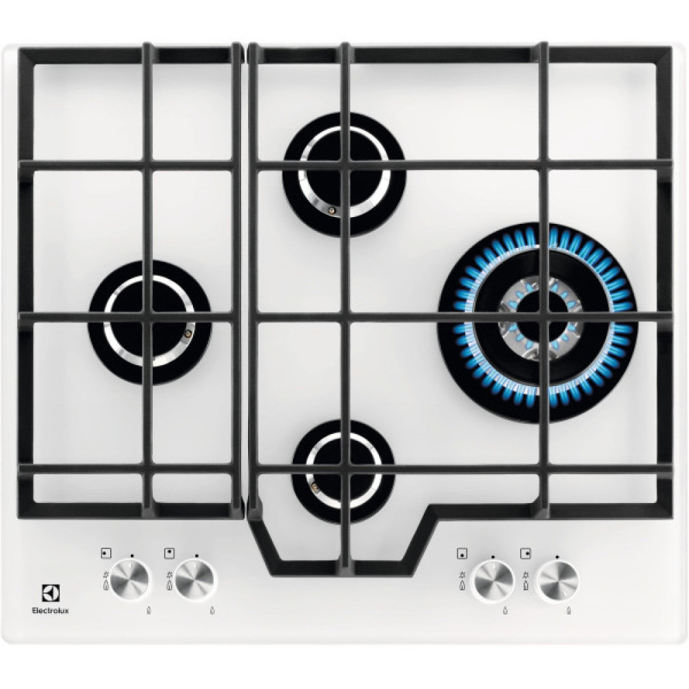 Electrolux GME363NV — це сучасна газова варильна поверхня, що поєднує в собі елегантність скла та потужність відкритого вогню.