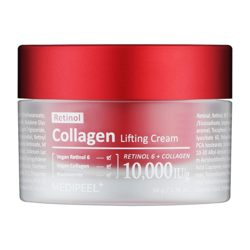 Подвійний ліфтинг-крем з ретинолом і колагеном Medi-Peel Retinol Collagen Lifting Cream має потужну омолоджуючу дію, розгладжує зморшки, зменшує видимість пор і підтягує, підвищуючи еластичність і пружність.