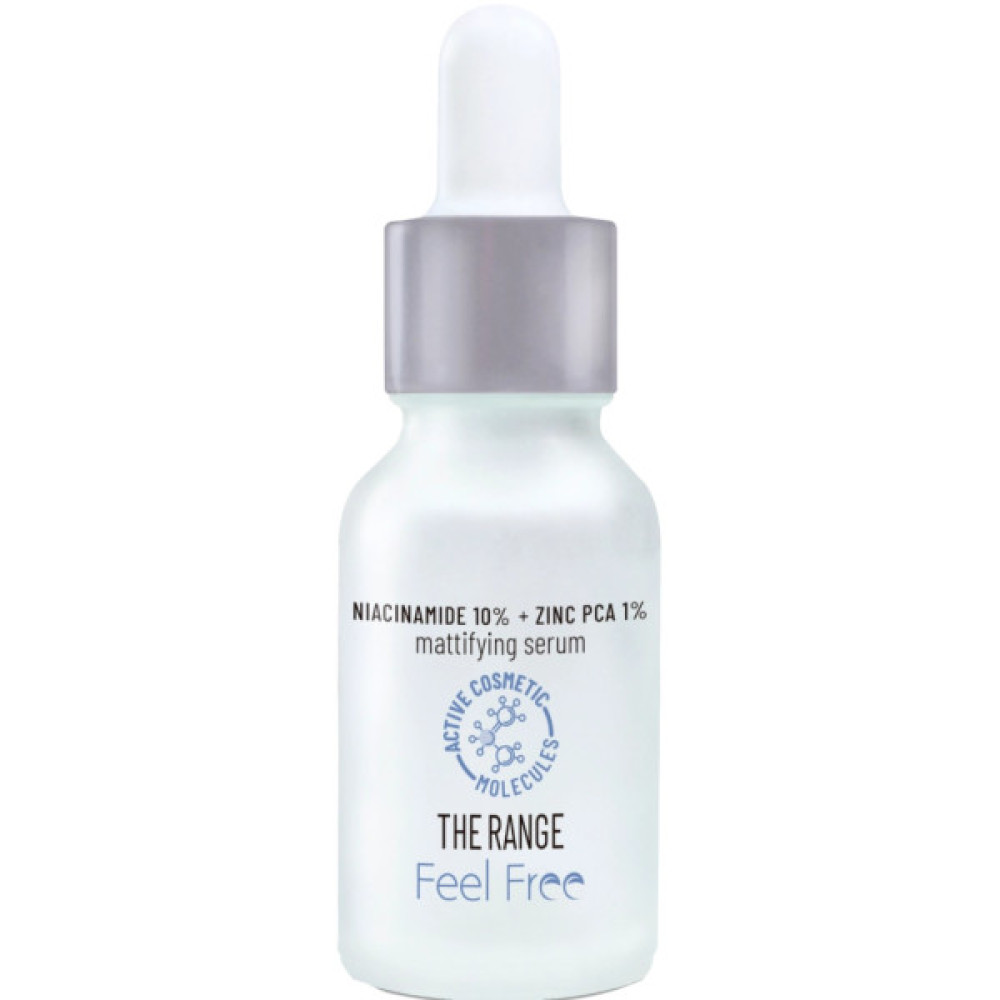 Ідеальний рівний тон шкіри, навіть без тональної основи? Якщо саме це є вашим запитом, то вибір точно має пасти на The Range Mattifying Serum від бренду Feel Free. Це сироватка на основі активних компонентів, які борються із акне, слідами від них та запаленнями. Цинк приглушує запалення, знімає набряк та підсушує прищі. Ніацинамід діє на випередження. Він знижує ризики закорковування пор, появи комедонів та акне. Таким чином ви впливаєте на шкіру зовні та зсередини і отримаєте найкращий результат.