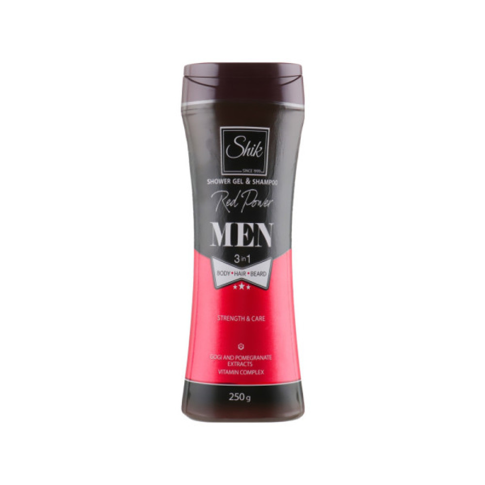 Гель для душу Shik 3 в 1 Men Red Power - це незамінний засіб для активних чоловіків, які цінують комфорт і практичність. Універсальний продукт створений для ефективного догляду за тілом, волоссям і бородою. Його формула збагачена потужними антиоксидантами та вітамінами, які дбайливо очищають і захищають шкіру, при цьому підсилюючи кровообіг, що сприяє відновленню і пом'якшенню.