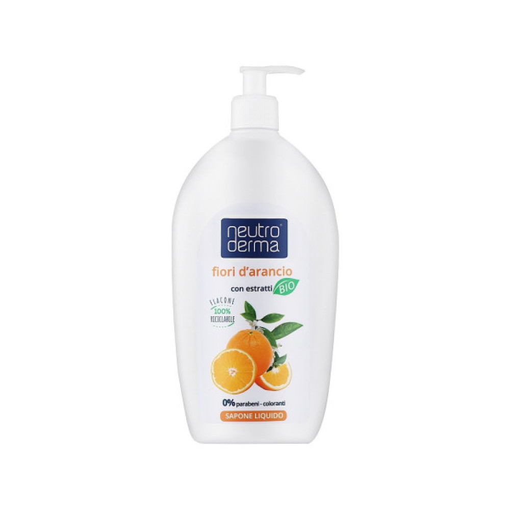 Рідке мило Neutro Derma з органічними екстрактами зберігає фізіологічний рН шкіри та призначене для делікатного очищення рук і обличчя всієї родини. Також підходить для найчутливішої шкіри завдяки делікатній формулі, збагаченій органічним екстрактом квітів апельсину, який має заспокійливі та відновлюючі властивості. Не містить парабенів і барвників. 100% перероблена пляшка.