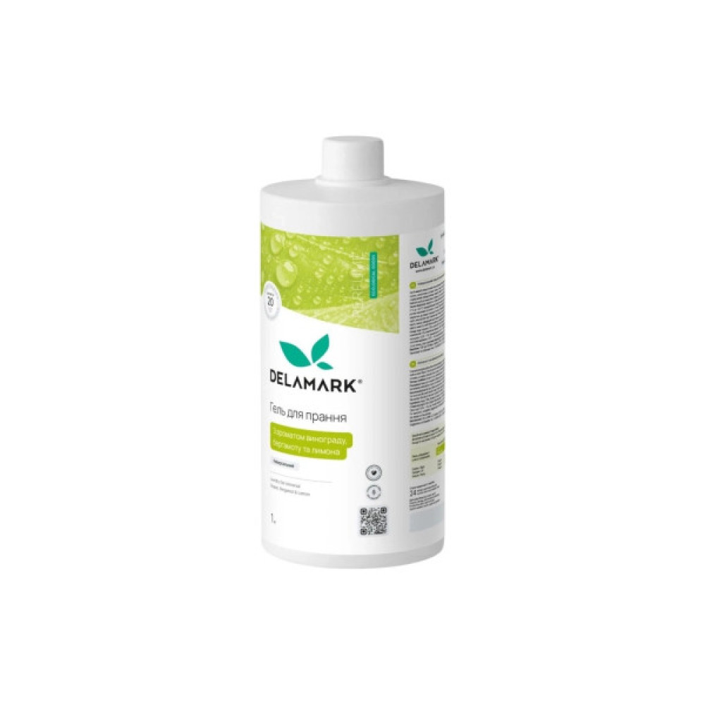 Концентрований безфосфатний гель для прання DeLaMark з ароматом винограду, бергамоту та лимона – розроблений технологами міжнародного рівня, щоб одночасно досягти трьох цілей: ефективно прати, не шкодити людині та дбайливо ставитися до природи. Гель для прання зручний у застосуванні, має надійну герметичну упаковку.