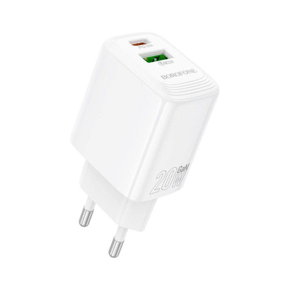 Зарядний пристрій BOROFONE BN27 Fuente 1xUSB-C PD20W + 1xUSB QC3.0 White (6941991120268) — це інноваційний адаптер, який підкорює світ сучасних технологій завдяки своєму бездоганному поєднанню швидкості та безпеки. Він створений для активних людей, які не звикли чекати, і забезпечує універсальність, що відповідає найвищим стандартам якості.