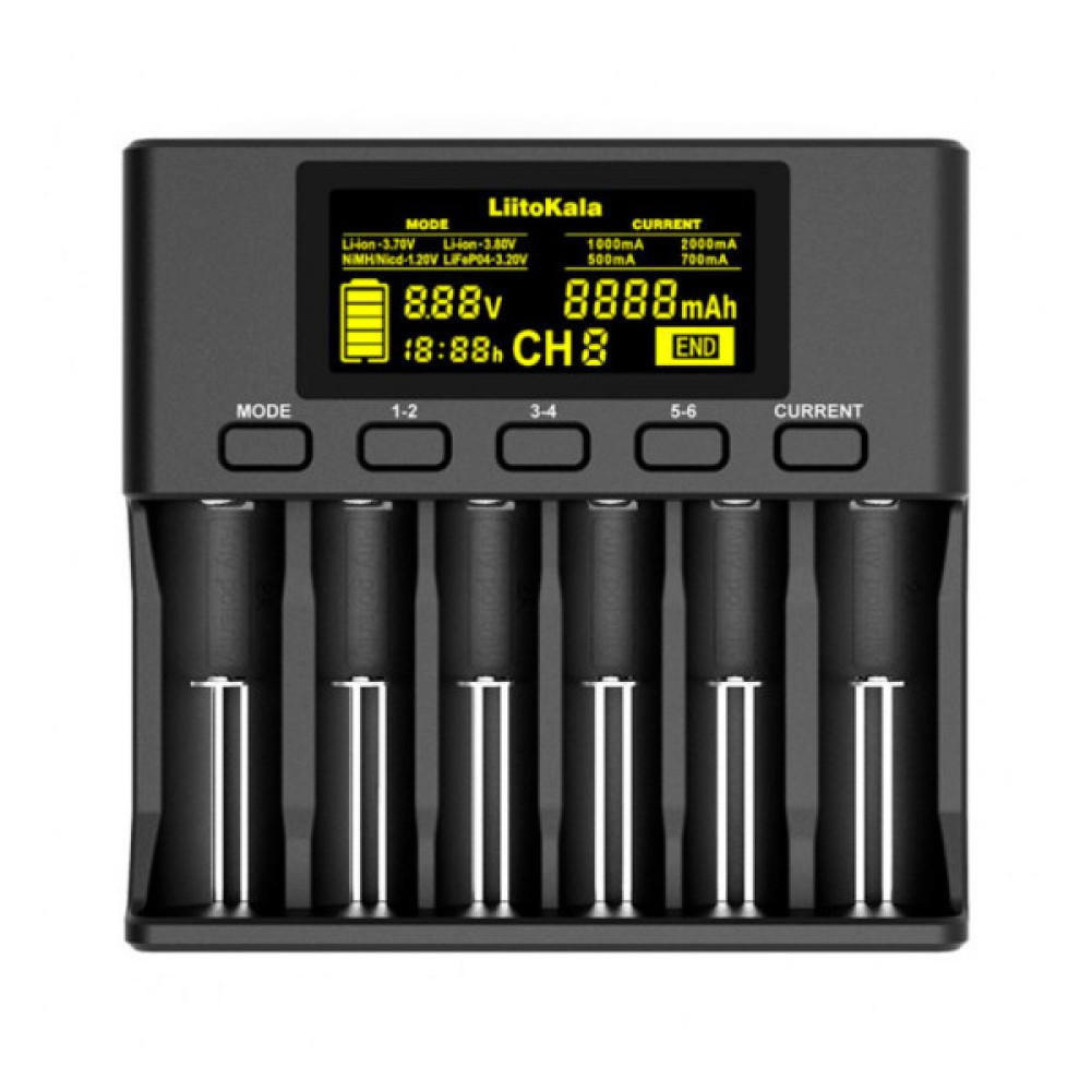 Зарядний пристрій для акумуляторів Liitokala 6 Slots, LCD дисплей, Li-ion/Ni-MH/Ni-Cd/AA/ААA/AAAA/С (Lii-S6)