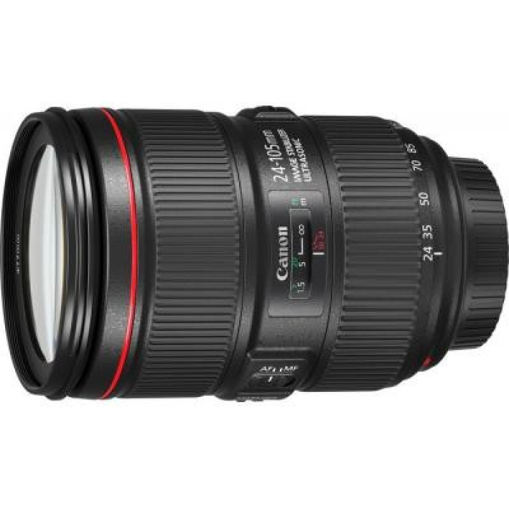 Canon EF 24-105mm f/4L IS USM - пило та вологонепроникний об'єктив головним чином призначений для фотографів, що працюють у жанрі фоторепортажу, а також, завдяки своїй невеликій вазі і маневреності, стане відмінним вибором для зйомки в подорожі. У об'єктива є вбудований стабілізатор, який дозволяє значно знизити розмитість зображення, викликану струсом камери під час зйомки. Робота стабілізатора грунтується на свідченнях гіроскопічного датчика, який, при реєстрації небажаних коливань, подає сигнал про необхідність коригуючого руху особливої групи лінз в напрямку, перпендикулярному до оптичної осі. Стабілізатор зображення забезпечує «запас» на три ступені експозиції.
