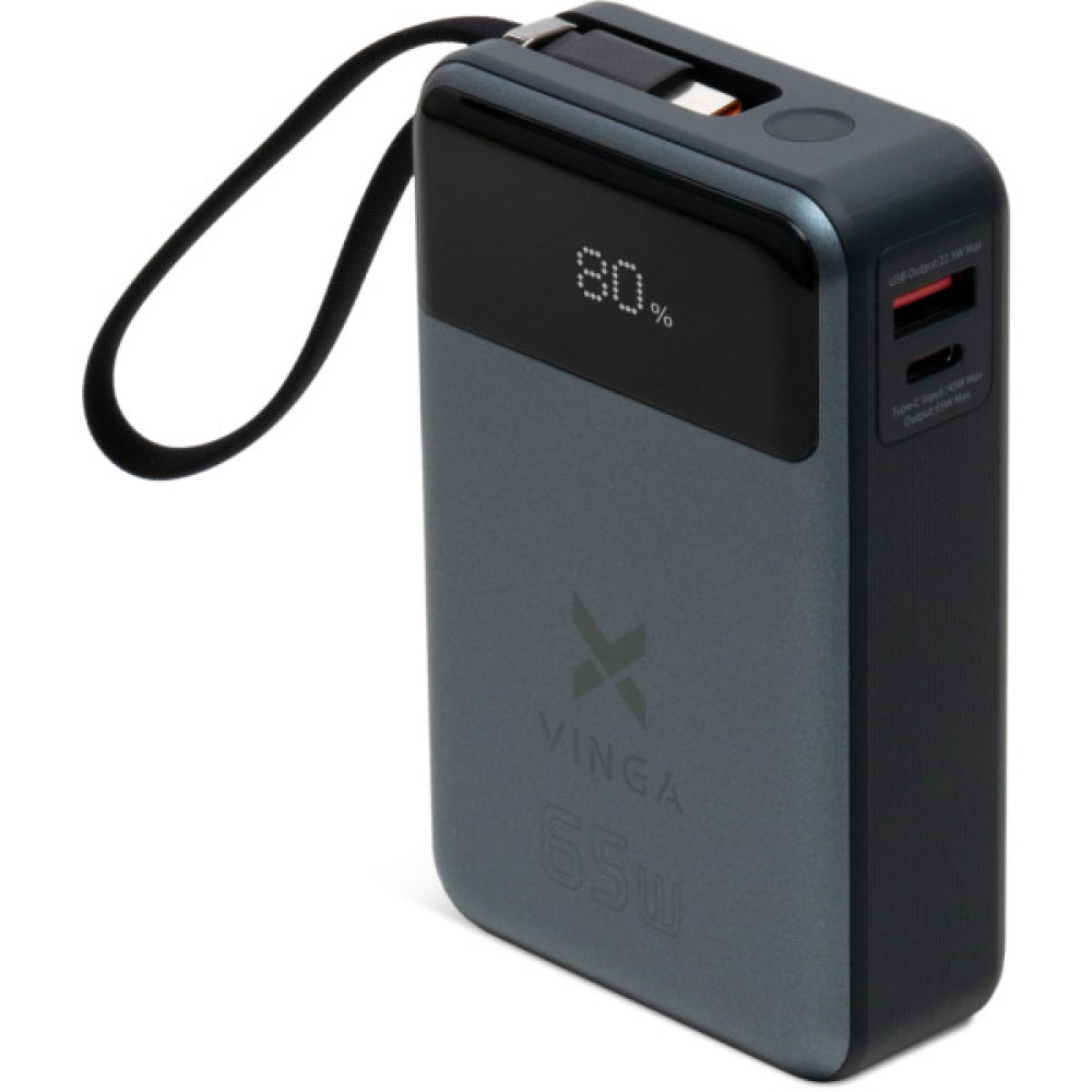 Представляємо універсальну батарею Vinga 20000 mAh 65W Display USB-C Cable Grey (VPBB2065C) — інноваційне рішення для забезпечення безперебійного живлення ваших ґаджетів. Висока ємність 20000 mAh дозволяє одночасно заряджати смартфони, планшети, ноутбуки, роутери, смарт-годинники та плеєри, задовольняючи всі ваші потреби, де б ви не знаходилися.