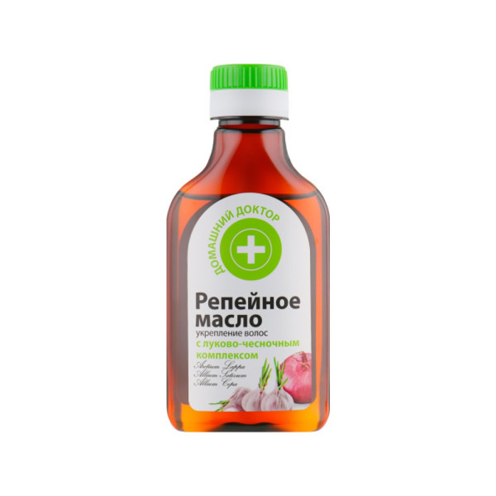 Продукція відомого бренду «Домашній доктор» призначена для всебічного догляду за волоссям і епідермісом, а також для профілактики багатьох захворювань. Реп'яхова олія з цибульно-часниковим комплексом допоможе зміцнити локони і запобігти їхньому випадінню. Народні традиції в поєднанні з новітніми технологічними розробками допомогли експертам виробника створити зручний у використанні продукт, який неодмінно порадує вас чудовим результатом.