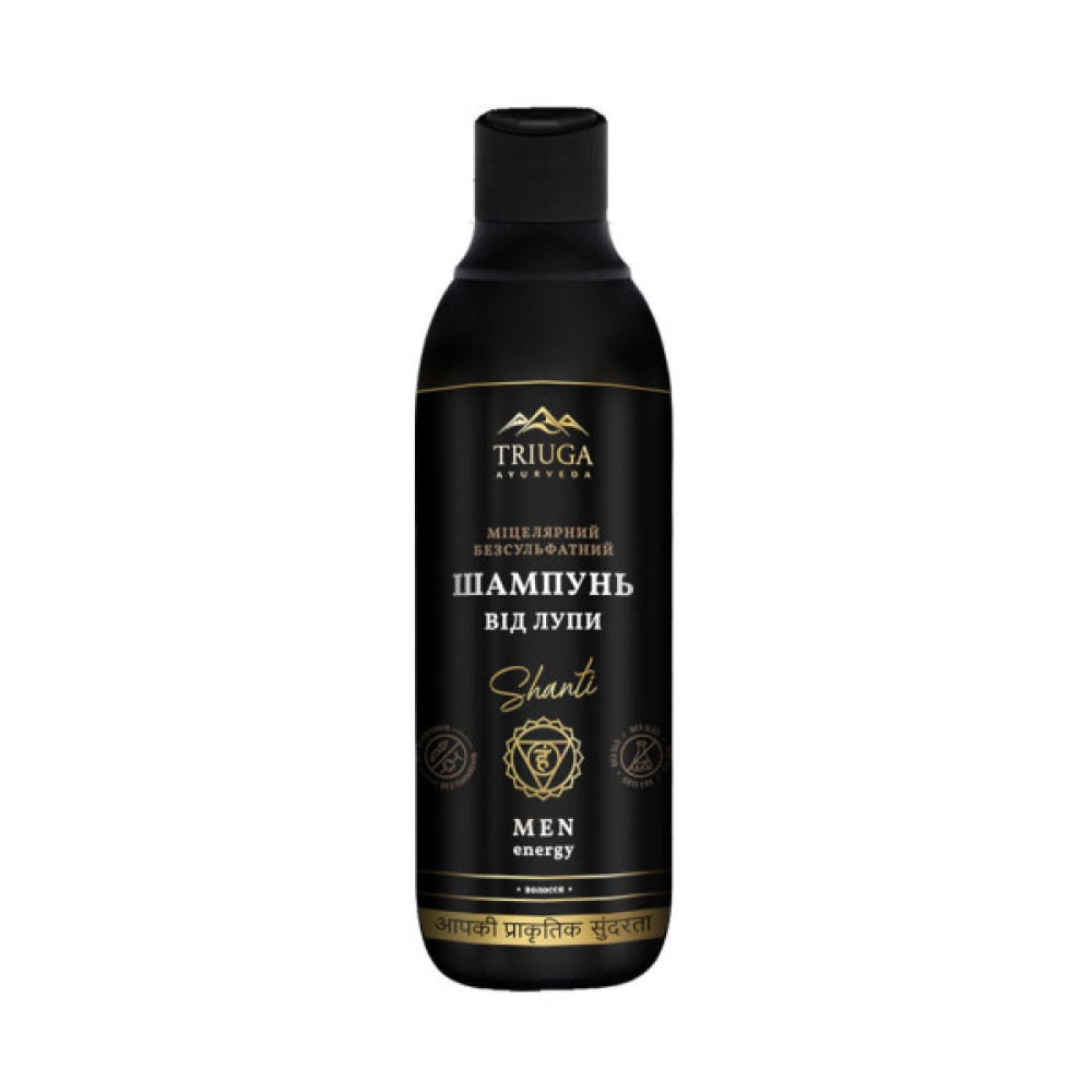 Шампунь Triuga Shanti for men від лупи - це революційний засіб на основі природних компонентів, створений для ефективної боротьби з лупою, завдяки унікальному міцелярному складу. Його безсульфатна формула робить цей засіб підходящим для усіх типів волосся, м'яко очищуючи шкіру голови та зберігаючи її природний баланс, не подразнюючи та не сушачи.