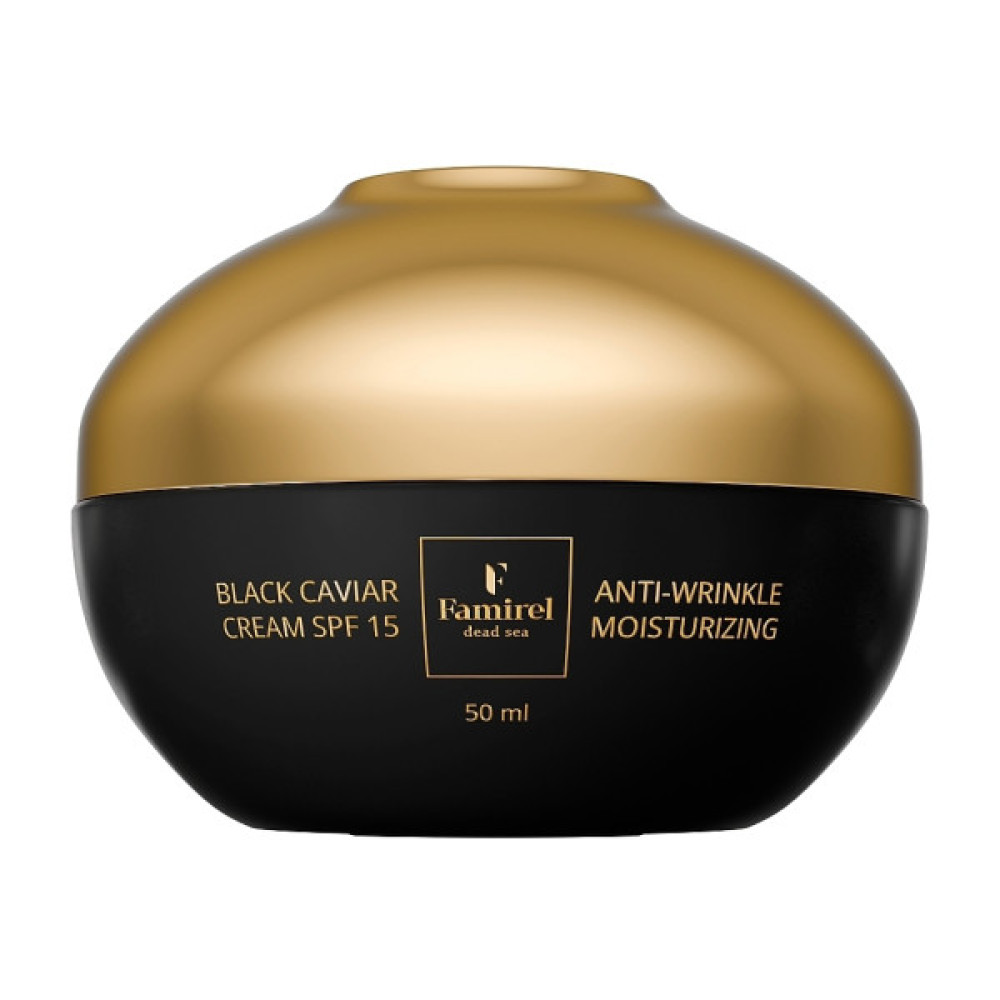 Зволожувальний крем проти зморшок з чорною ікрою чудово піклується про оптимальне живлення шкіри завдяки формулі з висококонцентрованими оліями й білками. Косметичний засіб має захисний фактор SPF 15, який оберігає шкірний покрив від UVA і UVB променів. Формула б'юті-продукту збагачена капсульованим вітаміном Е, що активується при нанесенні, а також оливковою олією, заспокійливими екстрактами ромашки, зеленого чаю, зволожувальним алое вера і цінними мінералами Мертвого моря. Такий крем інтенсивно насичує вологою і живить епідерміс, дарує відчуття комфорту і свіжості.