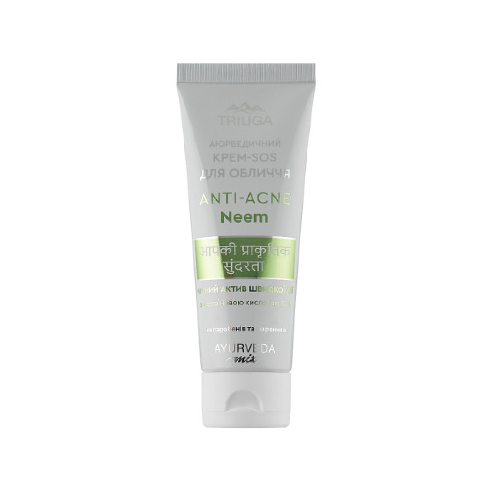 Спільна робота технолога, косметолога, дерматолога та спеціаліста з аюрведи дала змогу створити високоефективний дієвий аюрведичний крем-SOS «Neem» з потужною антибактеріальною, протизапальною та ранозагоювальною дією, яка миттєво зменшує запалення на шкірі, знімає відчуття печіння. Запобігає утворенню плям постакне та поширенню інфекції. Відновлює гідроліпідний баланс та мікрофлору шкіри, підтримує здоровий РН. Має регенерувальні властивості, які допомагають позбутися плям постакне. Звужує пори та нормалізує вироблення себуму та його склад. Крем допомагає отримати стійкий ефект бездоганної шкіри. усуває запальні процеси та запобігає появі нових висипань, відновлює колір та структуру шкіри. Не сушить шкіру!