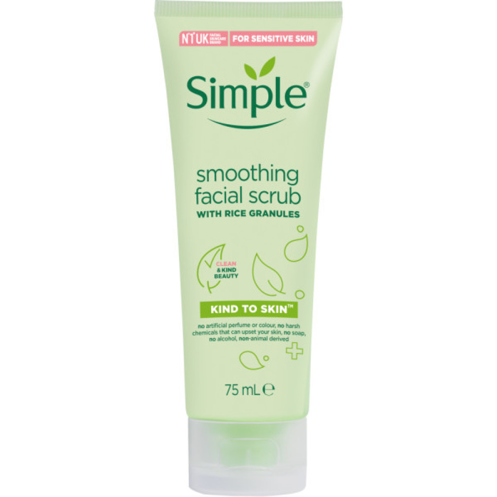 Скраб від бренду Simple підходить для чутливої шкіри.
