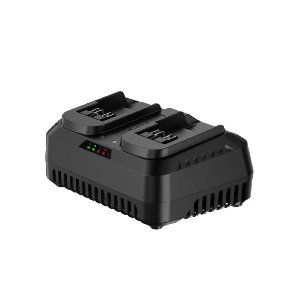 Зарядний пристрій на два акумулятори 20 В із швидким струмом 4 А — для ефективного заряджання літій-іонних батарей. Компактний і потужний, підходить для майстерні та будівельного майданчика. Упакований у яскраву коробку.