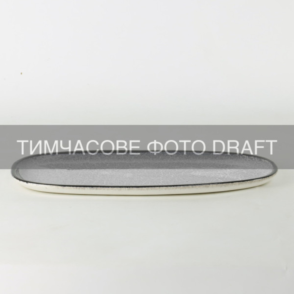Блюдо серії Daiano сірого кольору виготовлено з порцеляни, яка вирізняється міцністю та витонченим характером. Елегантна пласка форма виробу має стриманий і водночас виразний вигляд. Розмір посуду становить 28 × 16,6 × 1,4 см. Поверхня блюда має крапчасту текстуру з легким блиском, додаючи глибини та декоративної виразності. Виріб можна мити в посудомийній машині, зберігаючи первинний вигляд і охайність за щоденного користування.