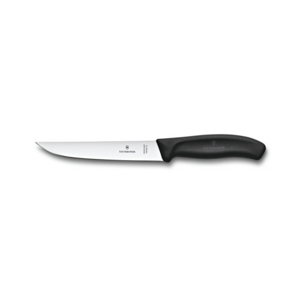 Victorinox SWISS CLASSIC Carving [6.8103.15B] - швейцарський ніж для обробки, який впорається з роллю і універсального кухонного інструменту. Довжина леза 15 см. Гладка заточка. Дизайн з чорною ручкою. Дуже добре підходить для щоденної роботи на кухні: від підготовки продуктів для подальшого готування до обробки вже готових страв. Неймовірно гострий і довговічний помічник.