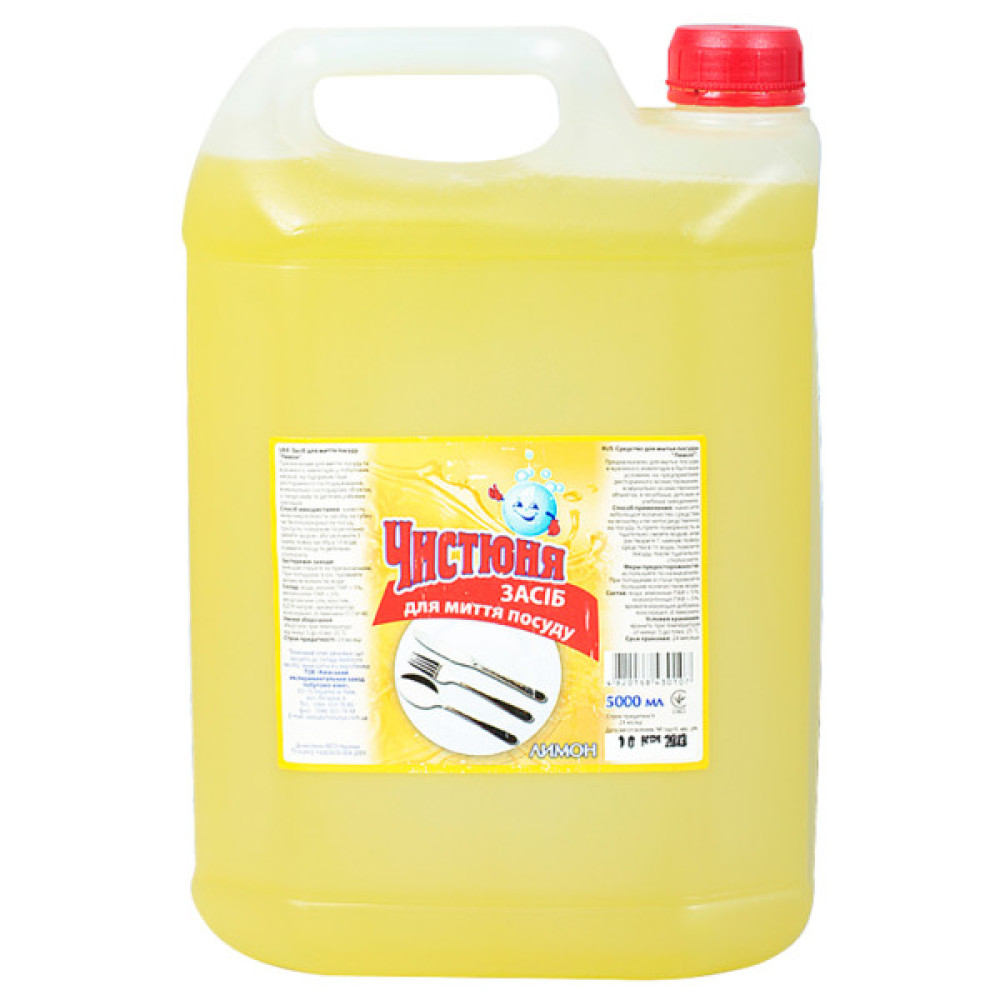 Засіб для ручного миття посуду "Чистюня Лимон" об'ємом 5 літрів стане вашим незамінним помічником на кухні. Виготовлений в Україні, цей універсальний засіб розроблений з урахуванням піклування про шкіру рук, завдяки вдосконаленій формулі захисту.