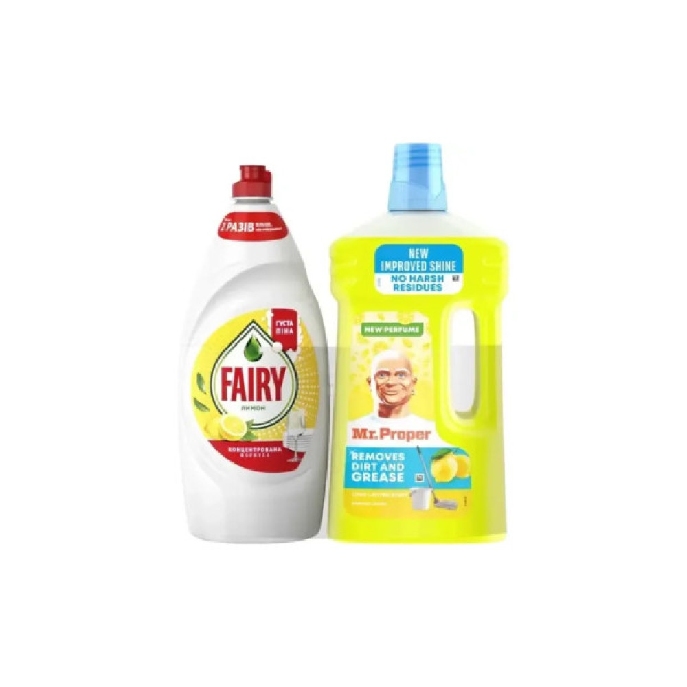 Набір для бездоганної чистоти з ароматом лимона: Mr Proper 1 л + Fairy 900 мл cтане вашим надійним помічником у підтриманні чистоти в домі.