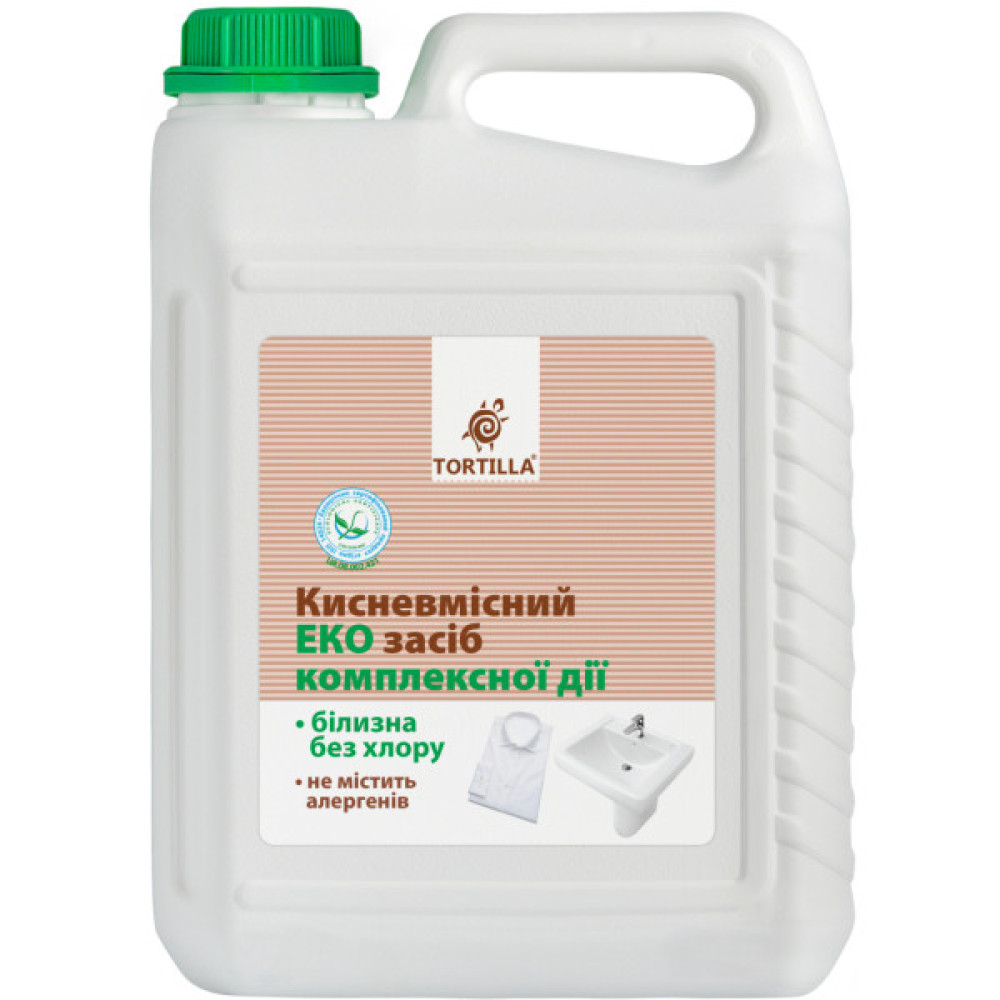 Кисневмісний ЕКО засіб комплексної дії (Білизна без хлору) "Тортила" — засіб для вибілювання, виведення плям, санітарного оброблення тканин і поверхонь. Має антибактеріальну дію.