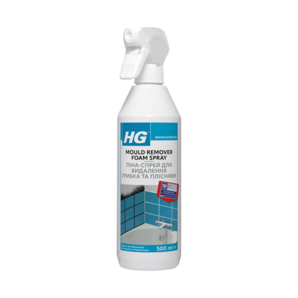 Силіконовий ущільнювач на ваннах, душових кабінах, а також плитка або штукатурка у ванній кімнаті часто покриваються чорною пліснявою, яку буває важко видалити. Піна-спрей для видалення цвілі HG має м'який аромат. Вона також легко і точно розпилюється, тому ви можете використовувати цей засіб для видалення цвілі у ванній кімнаті, не допускаючи розбризкування на сусідні поверхні. Ви також можете подивитися спрей від плісняви HG. Його унікальна пінна формула забезпечує оптимальне нанесення, є швидкодіючим і це означає, що ви побачите позитивні результати вже через 30 хвилин.
