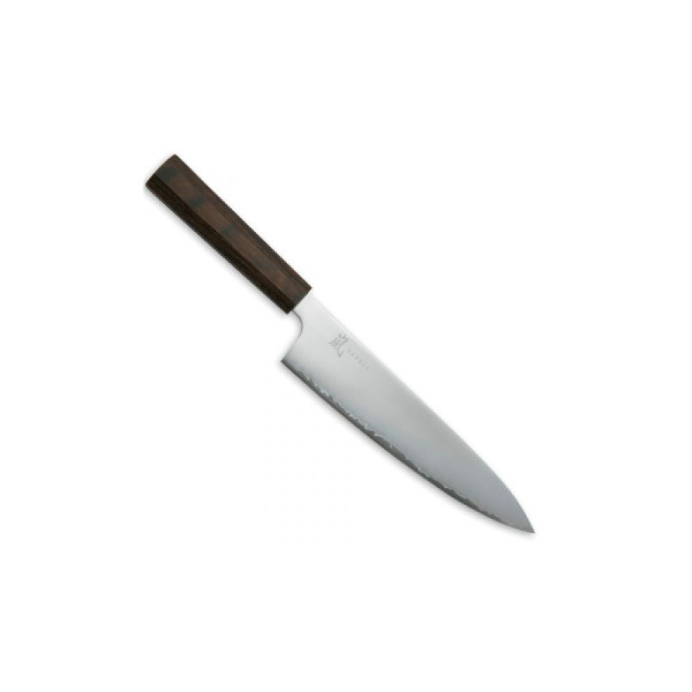 Ніж серії Hana від Yaxell підходить для щоденного використання на професійній або домашній кухні, оскільки витримує будь-яке робоче навантаження. В основі високоякісної сталі Movax (хром, молібден, ванадій) покрита захисними обкладками з 3 шарів нержавіючої сталі. Преміальна восьмикутна темно-коричнева ручка Pakka Wood (композит дерева та смоли), розроблена досвідченими дизайнерами Yaxell, забезпечує ідеальний баланс та оптимальний контроль. Поєднання матеріалів та дизайну Yaxell забезпечує відмінний зовнішній вигляд та зручність нарізки, що робить ці ножі найкращим вибором на кухні. Це ідеальний вибір як для професійних шеф-кухарів, так і для домашніх кухарів-ентузіастів, які шукають високу якість, довговічність та сучасність на своїй кухні.