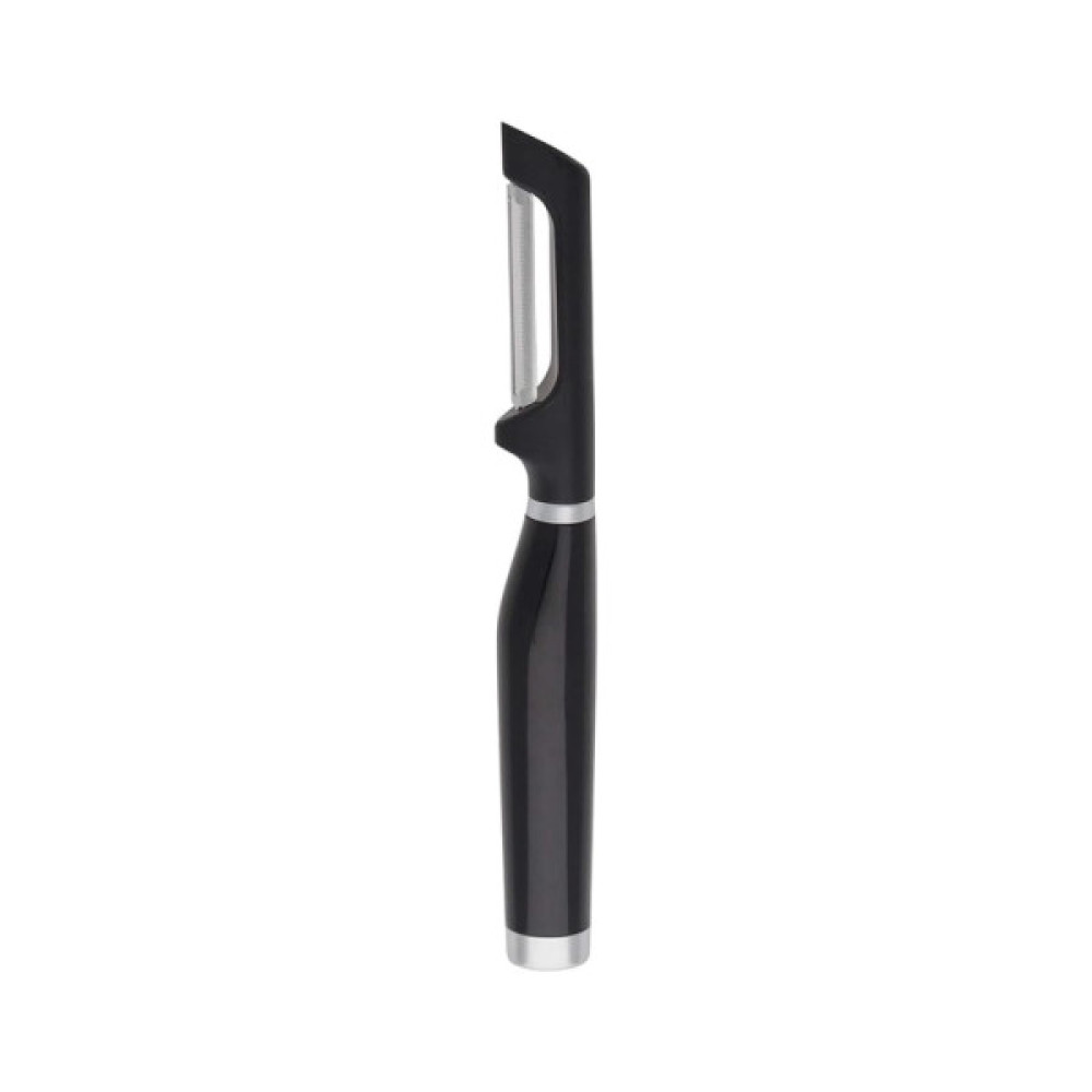 Овочечистка KitchenAid Classic — практичний інструмент для швидкого та зручного чищення овочів і фруктів. Завдяки гладкому лезу з нержавіючої сталі вона ідеально підходить для продуктів із жорсткою шкіркою, таких як картопля, морква, яблука, груші чи ківі. Ергономічна пластикова ручка забезпечує комфортне використання, а стильний чорний дизайн робить її елегантним доповненням до кухонного приладдя.