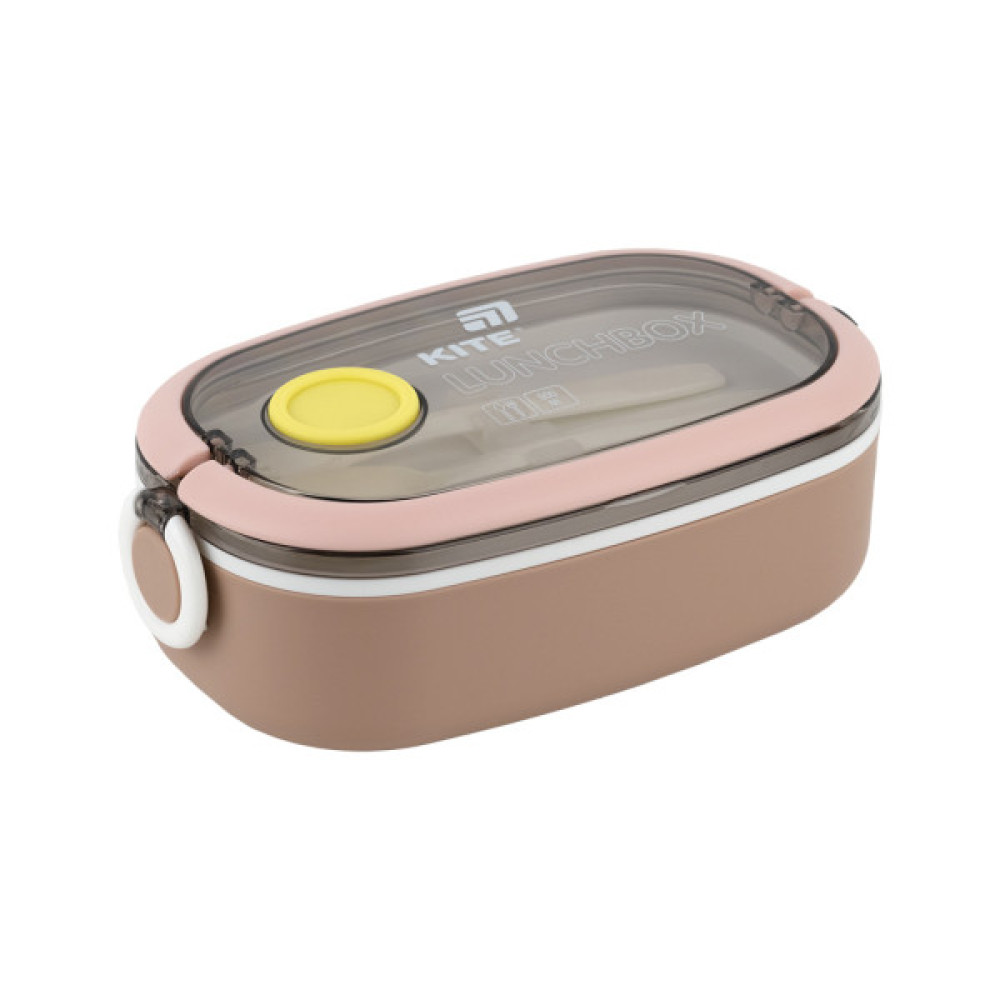 Ланчбокс з наповненням Kite — зручний та місткий контейнер для обіду, який легко взяти з собою до школи, офісу, в дорогу чи на прогулянку. Простий у використанні, надійний у транспортуванні та стильний на вигляд — усе, що потрібно для комфортного прийому їжі поза домом. Контейнер виготовлений із безпечного харчового пластику, який не вбирає запахи, не містить шкідливих речовин (BPA free) та не впливає на смак їжі. Прозора кришка з клапаном дозволяє зручно розігріти страву в мікрохвильовці — просто відкрий клапан перед нагріванням. Бічні клямки надійно фіксують кришку, запобігаючи відкриванню. Усередині — одне просторе основне відділення, яке закривається додатковою внутрішньою кришкою для кращої герметичності. У комплекті — пластикова ложка та виделка — усе готово для повноцінного обіду.