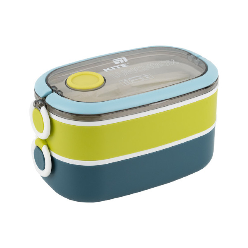 Ланчбокс подвійний Kite — універсальний та місткий контейнер для повноцінного обіду, який адаптується під ваш ритм життя. Ідеальний для школи, офісу, прогулянок, пікніків і подорожей. Завдяки двом відділенням із додатковими кришками, ви самі вирішуєте, скільки взяти з собою: одну ємність чи обидві одразу. Контейнер виготовлений із безпечного харчового пластику, який не вбирає запахів, не містить бісфенол-А та не змінює смак їжі. Прозора верхня кришка з клапаном дозволяє розігрівати страву в мікрохвильовці (достатньо просто відкрити клапан), а надійні бічні клямки фіксують обидві ємності разом. Усередині — два окремих містких відділення, кожне з додатковою внутрішньою кришкою. Можна використовувати обидва для великого обіду або лише одне — для перекусу. У комплекті є пластикова ложка та виделка, зручно зафіксовані всередині.