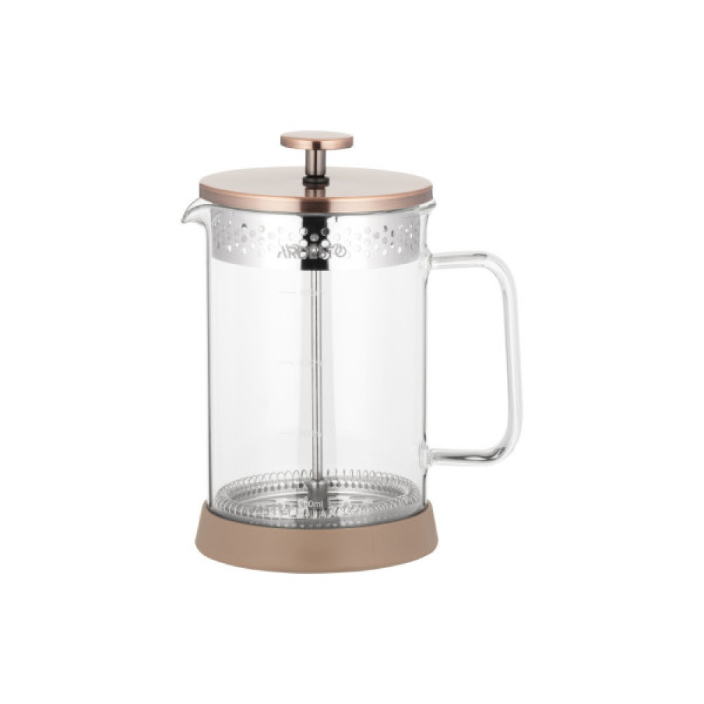 Прозорий френч-прес для приготування гарячих і холодних напоїв виготовлено із надійного боросилікатного скла, нержавіючої сталі та коричневого пластику. Вирізняється широким діапазоном термостійкості: від -20 °C до 230 °C. Можна мити в посудомийній машині.