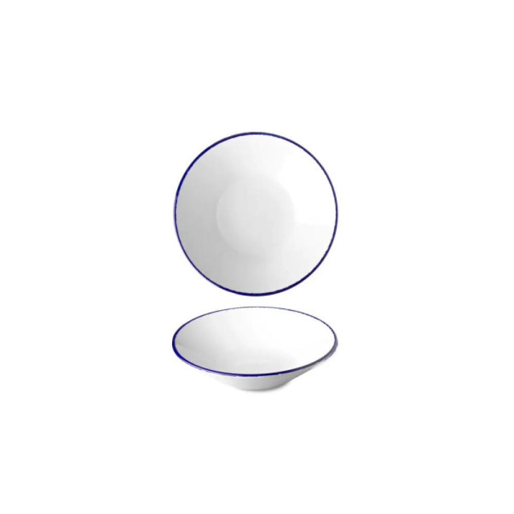 Тарілка для пасти Optimo Picnic від чеського виробника G.Benedikt виготовлена з високоякісного фарфору. Створена в розкішному білому кольорі з синьою облямівкою та покрита глянсовою глазур'ю. Має підвищену механічну міцність і відповідає всім санітарно-гігієнічним нормам. Посуд даного бренду неодмінно додасть кожному готелю, ресторану та кафе незвичайний затишок та харизму, а також підкреслить вишуканий стиль закладу.
