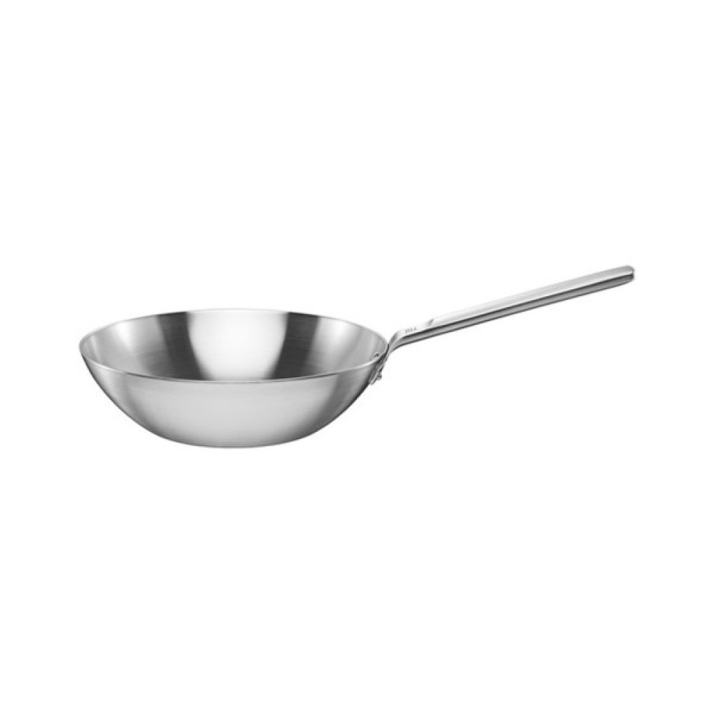 Сковорода Wok Fiskars Norden із нержавіючої сталі без покриття має товсте дно та цільну конструкцію, що забезпечує хороше розподілення тепла по всій сковороді. Ідеально підходить для високих температур, для смаження та підрум’янення інгредієнтів навіть у невеликих кількостях. Алюмінієвий сердечник, укладений між двома шарами сталі, гарантує рівномірний і ефективний нагрів на всіх типах плит. Текстуроване дно забезпечує чудове розподілення олії під час приготування. Сталева ручка обмежує передачу тепла для безпечного використання. Максимальна температура для смаження або запікання: 270°C.