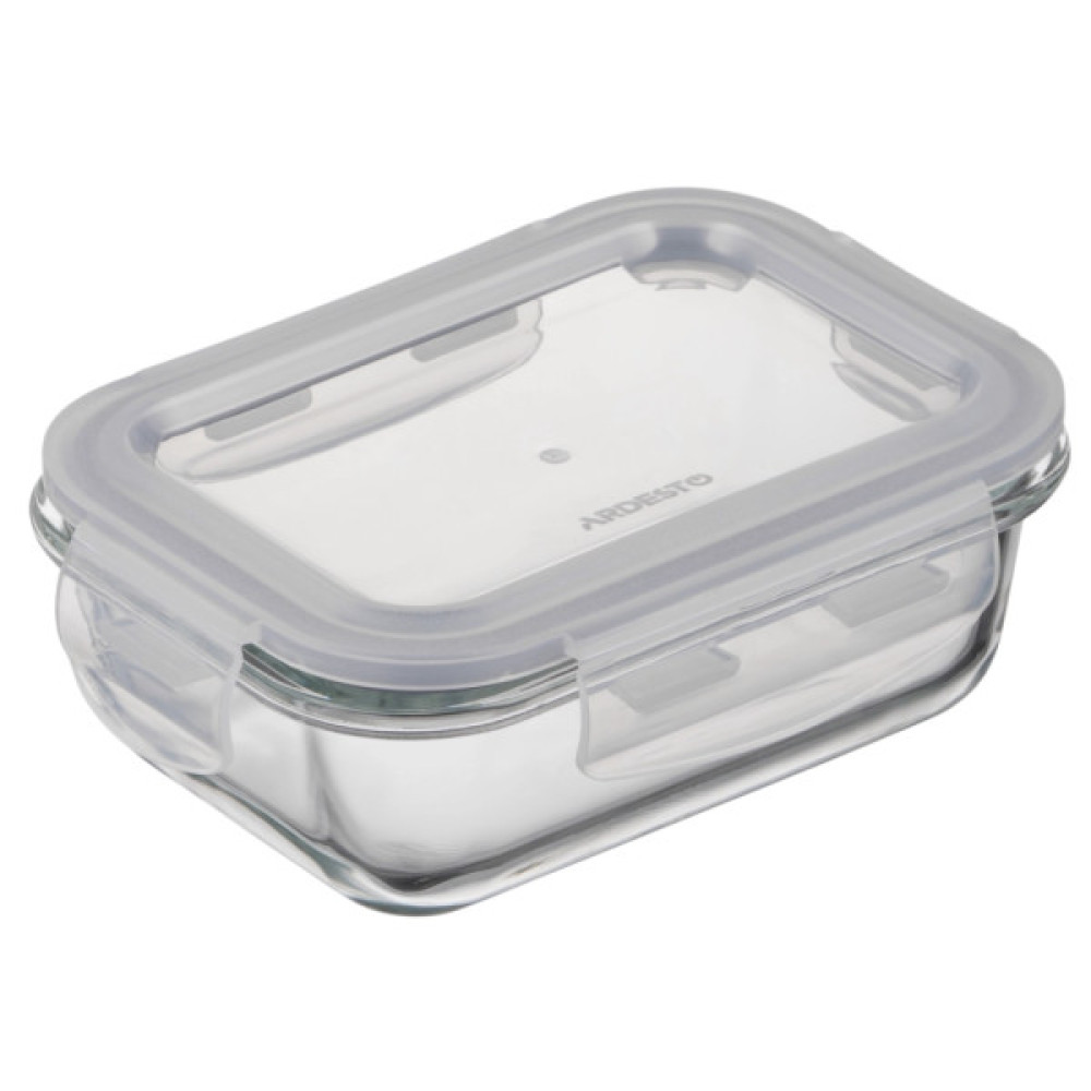 Контейнер об’ємом 0,4 л виготовлено з екологічного боросилікатного скла, яке не вбирає запахи, зберігаючи аромат і смак продуктів, та гарантує довговічність виробу. Пластикова кришка забезпечує герметичність. Завдяки термостійкості виробу його можна залишати в морозильній камері, холодильнику, використовувати для підігрівання страв в мікрохвильовій печі або приготування в духовій шафі (без кришки). Розмір контейнера – 15,7 × 11,7 × 5,8 см. Виріб легкий у догляді – його можна мити в посудомийній машині. У контейнері зручно як зберігати страви або продукти вдома, так і брати з собою в офіс чи в подорож.