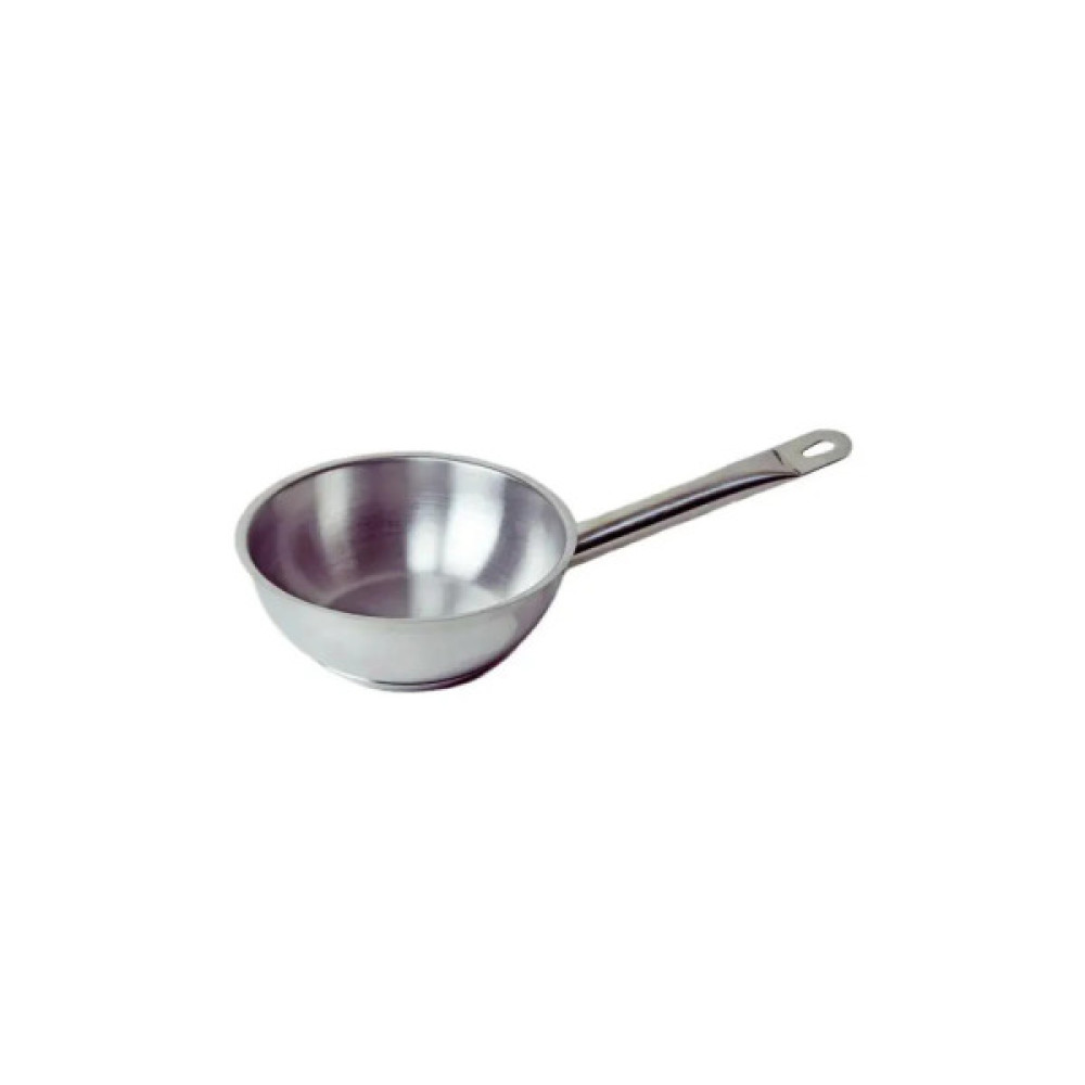 Сотейник з товстим дном має порожнисту ручку, яка надійно прикріплена методом точкової пайки.