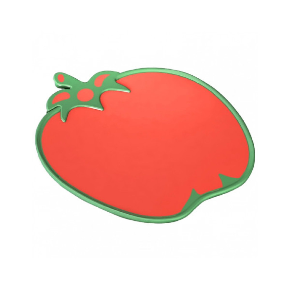 Дошка обробна в формі помідора - практичний і яскравий атрибут на кухні. Прогумовані краю, запобігають ковзанню по столу, є отвір для підвішування. Виготовлена з якісного пластику, призначеного для контакту з харчовими продуктами.