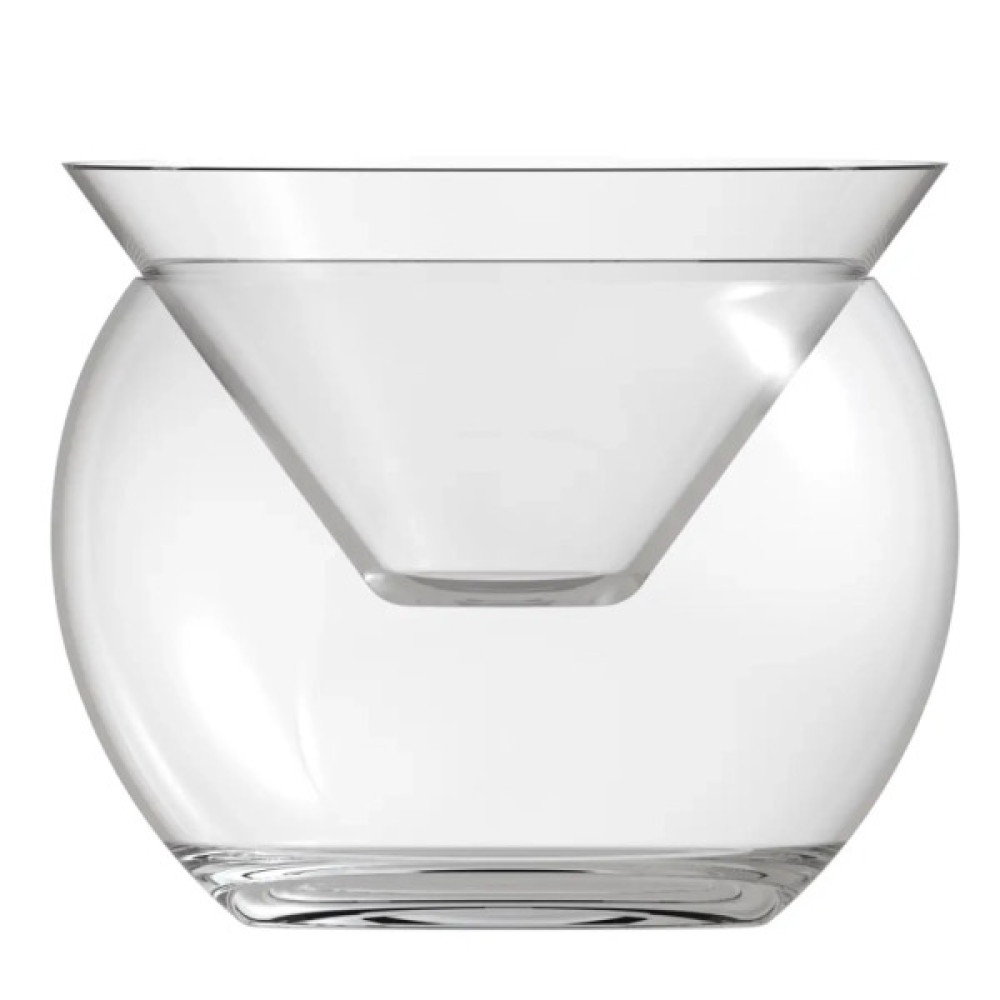 Комплект скляного прозорого посуду для коктейлів, закусок та десертів із двох предметів. Оригінальне рішення дизайну насамперед було спрямоване на нову презентацію коктейлю Martini, але несподівано стало популярним для подачі холодних закусок та десертів.