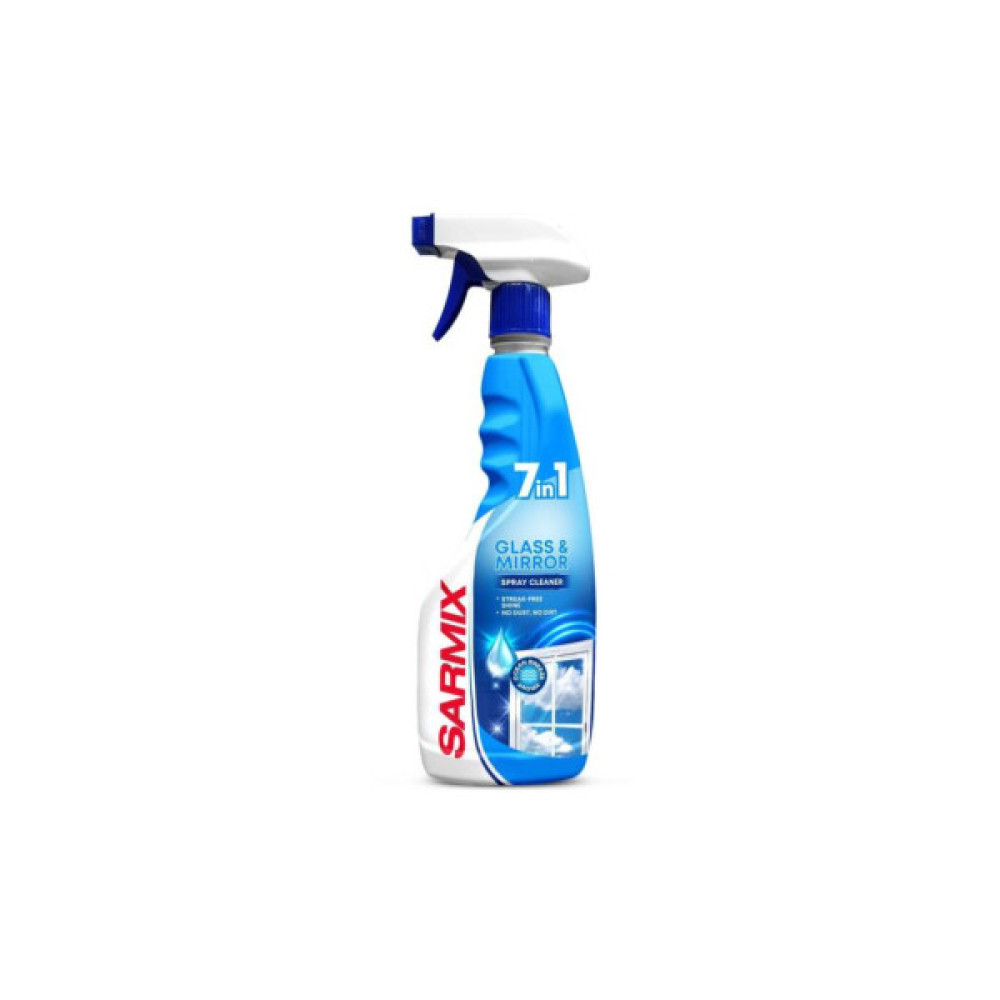 Засіб SARMIX - ідеальне рішення для бездоганного очищення скла та дзеркал. Спрей також підходить для будь-яких скляних, дзеркальних, кахельних, хромованих поверхонь та поверхонь з нержавіючої сталі, для автомобільного скла та дзеркал.