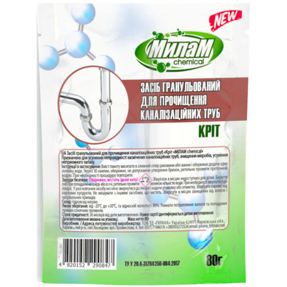 Теги: Засіб, прочищення, труб, Мілам, Chemical, Кріт, гранули, 80, г, 4820152290847