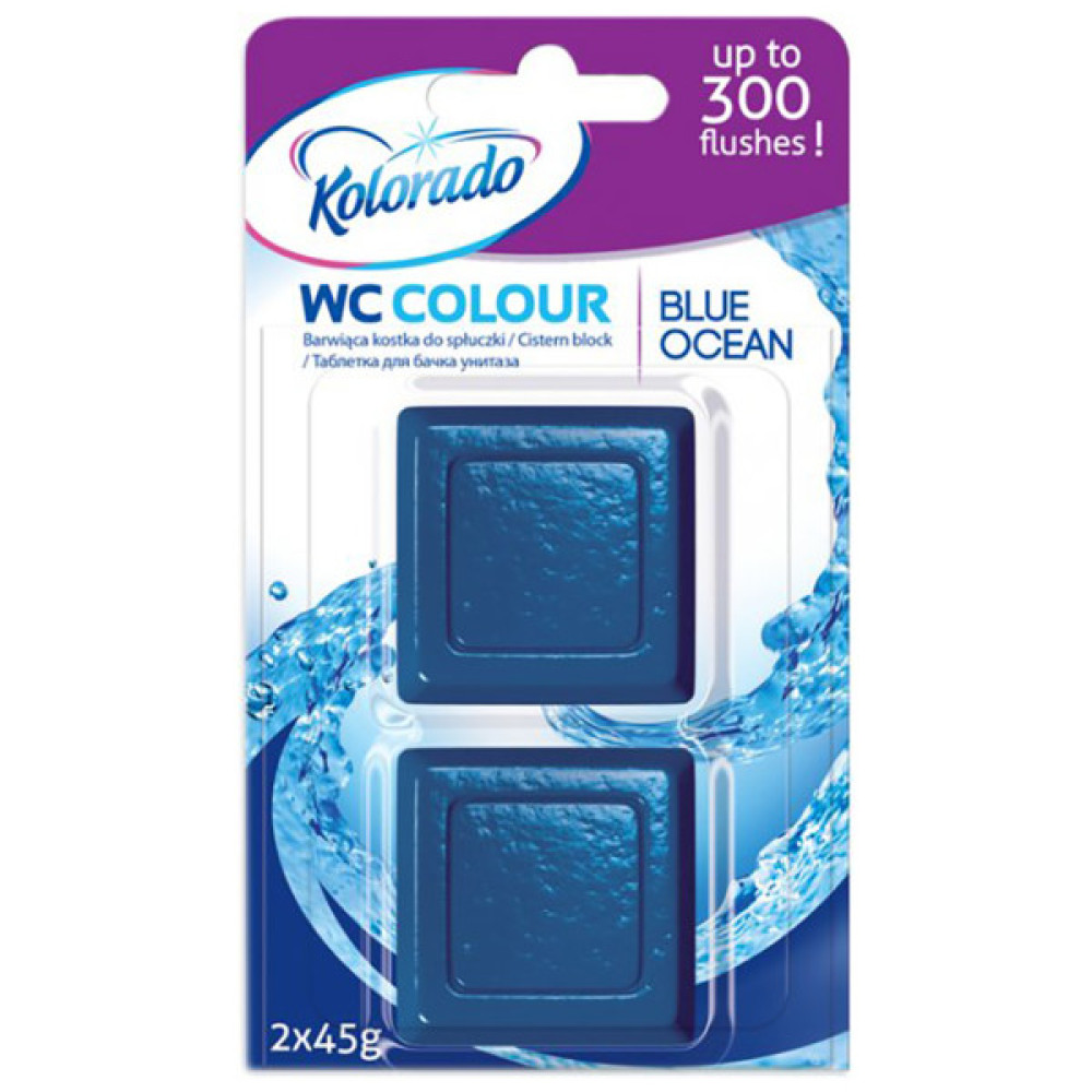 Таблетки для зливного бачка Kolorado Ocean - це однофазний фарбуючий, освіжаючий й очищувальний засіб для бачка унітаза. Піниться, фарбує воду і створює приємний запах у туалеті. Завдяки відповідним компонентам запобігає осадженню відкладень і створює рясну піну.