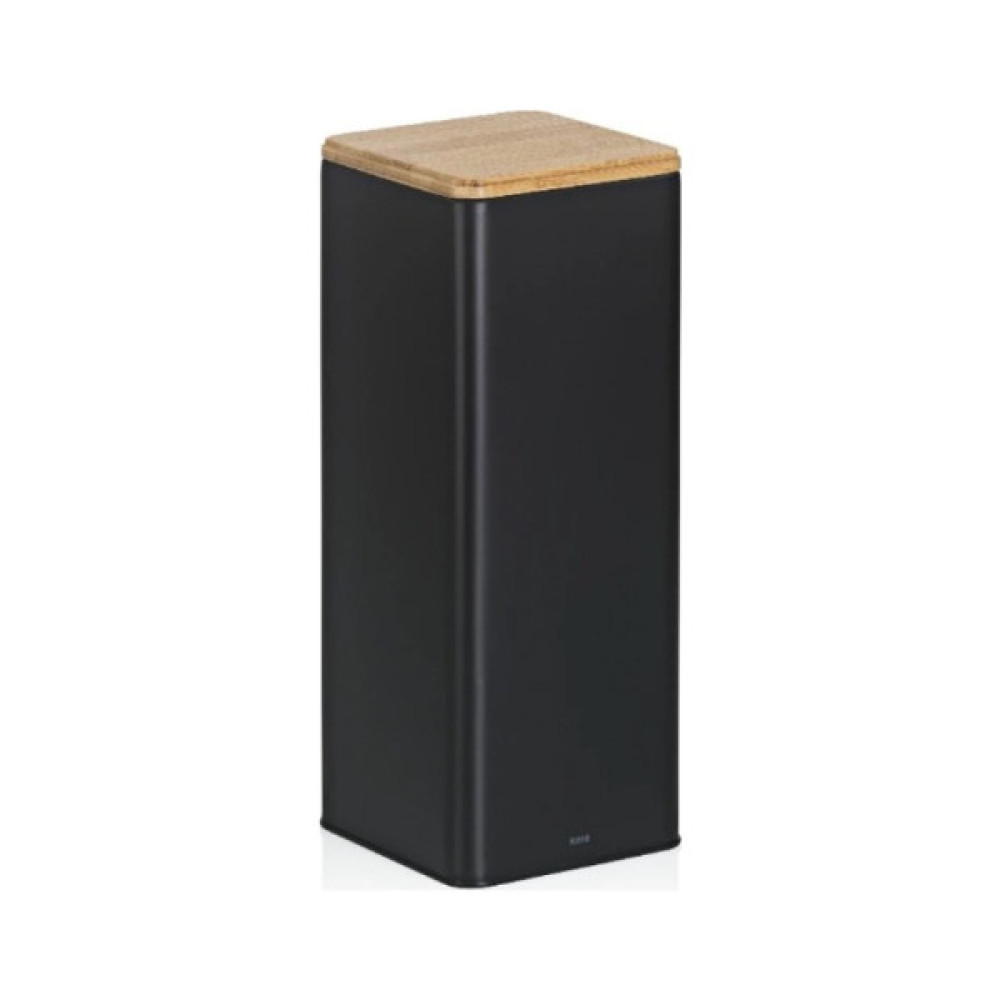 Ємності для зберігання Kela Kiril виготовлені з високоякісного металу і вражають своєю елегантною матово-чорною поверхнею. Вони надають вашій кухні сучасний і непідвладний часу вигляд. Кришка з промасленого бамбука не тільки забезпечує природний контраст, а й акуратно закривається.